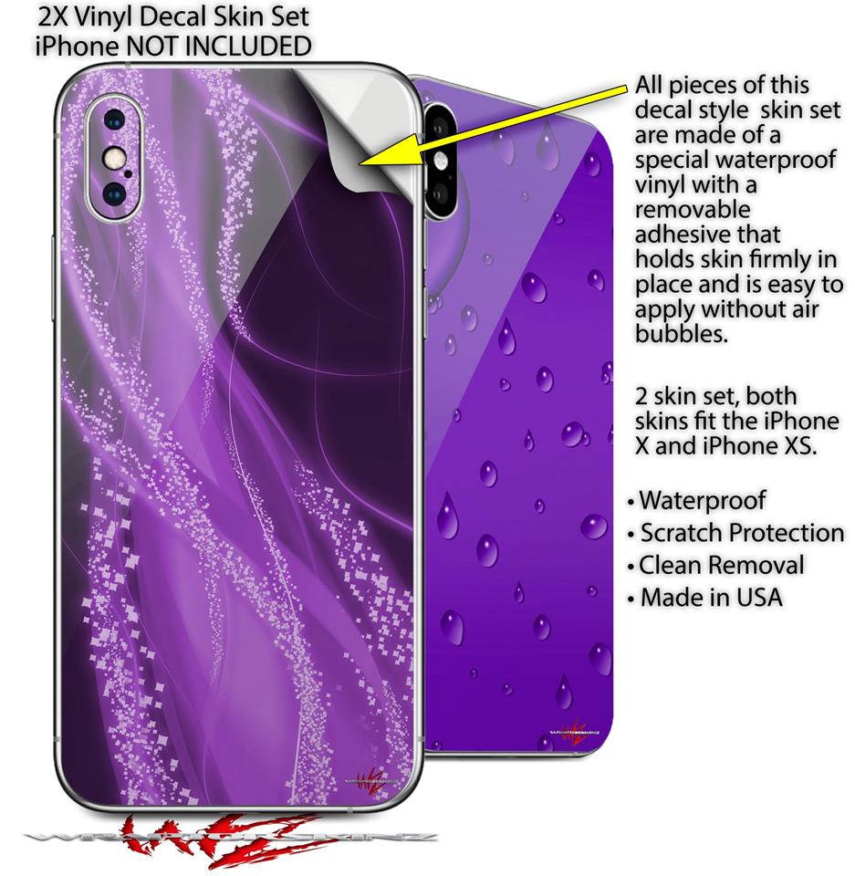 2 Decal style Skin Wraps set compatible with Apple iPhone X and XS Mystic Vortex Purple