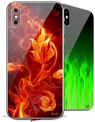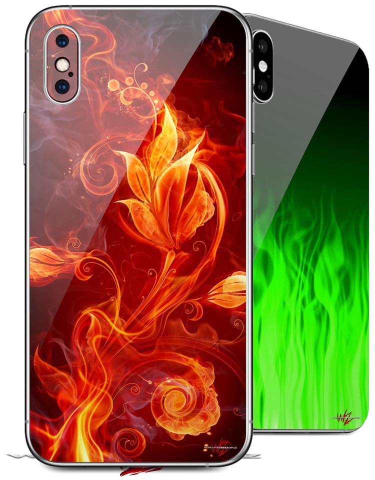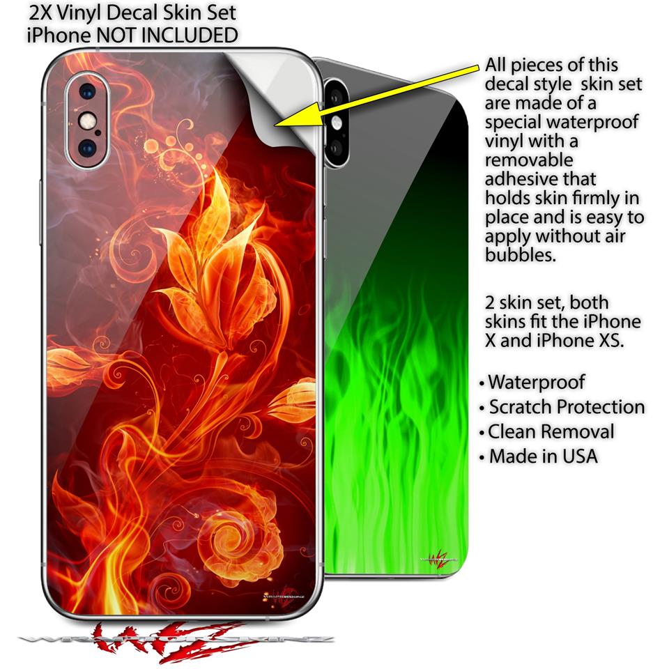 2 Decal style Skin Wraps set compatible with Apple iPhone X and XS Fire Flower
