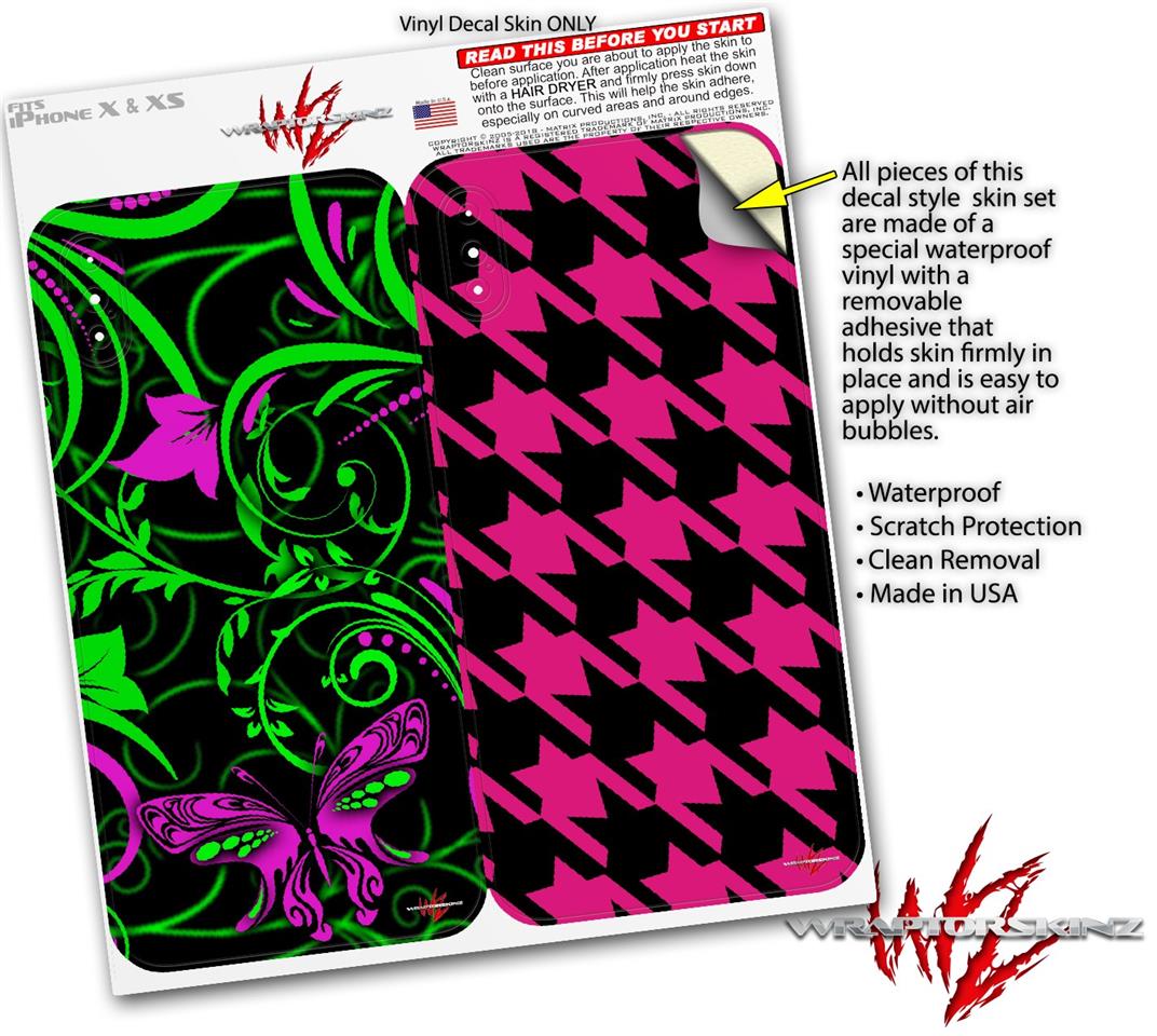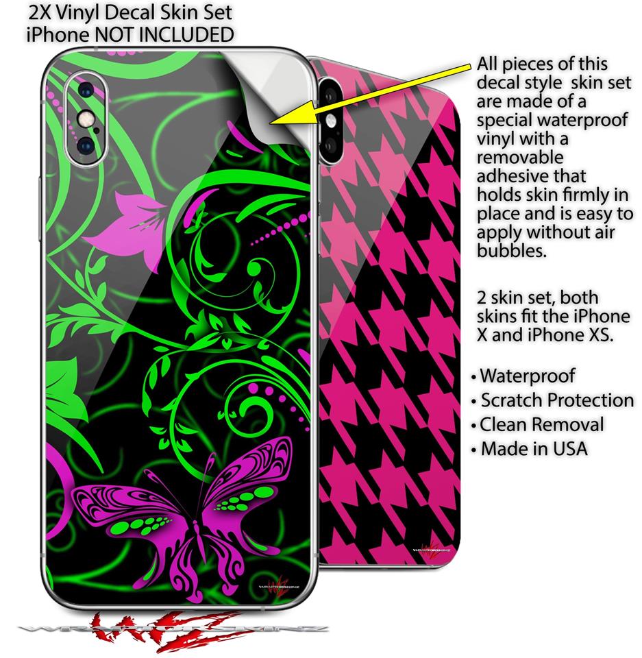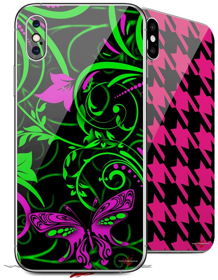 2 Decal style Skin Wraps set compatible with Apple iPhone X and XS Twisted Garden Green and Hot Pink