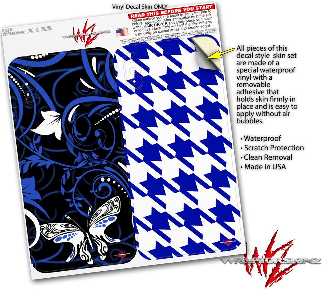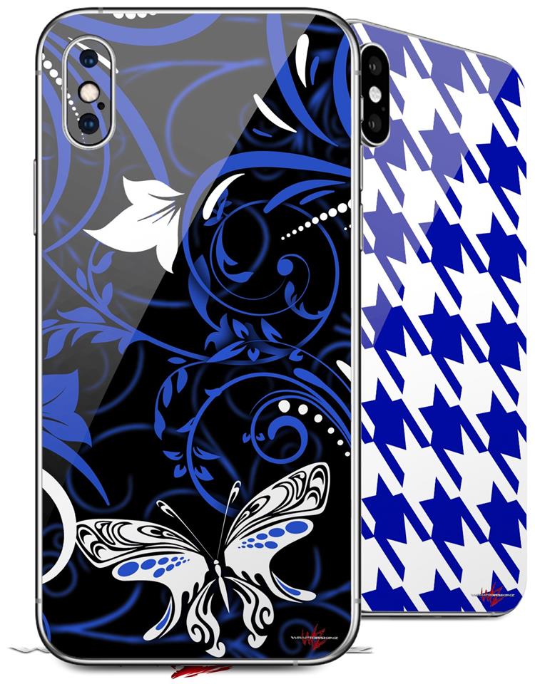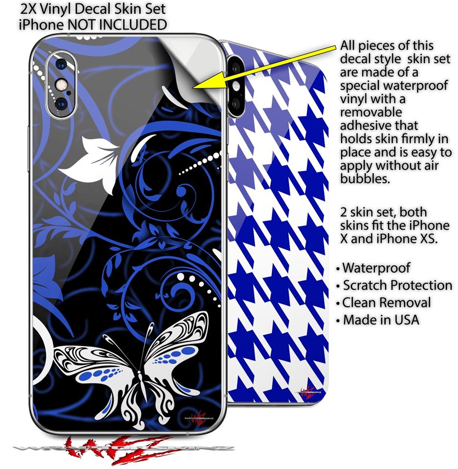 2 Decal style Skin Wraps set compatible with Apple iPhone X and XS Twisted Garden Blue and White