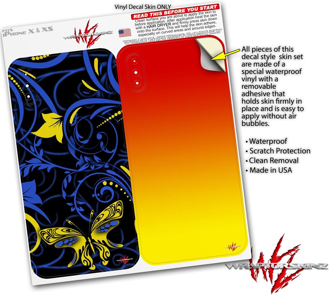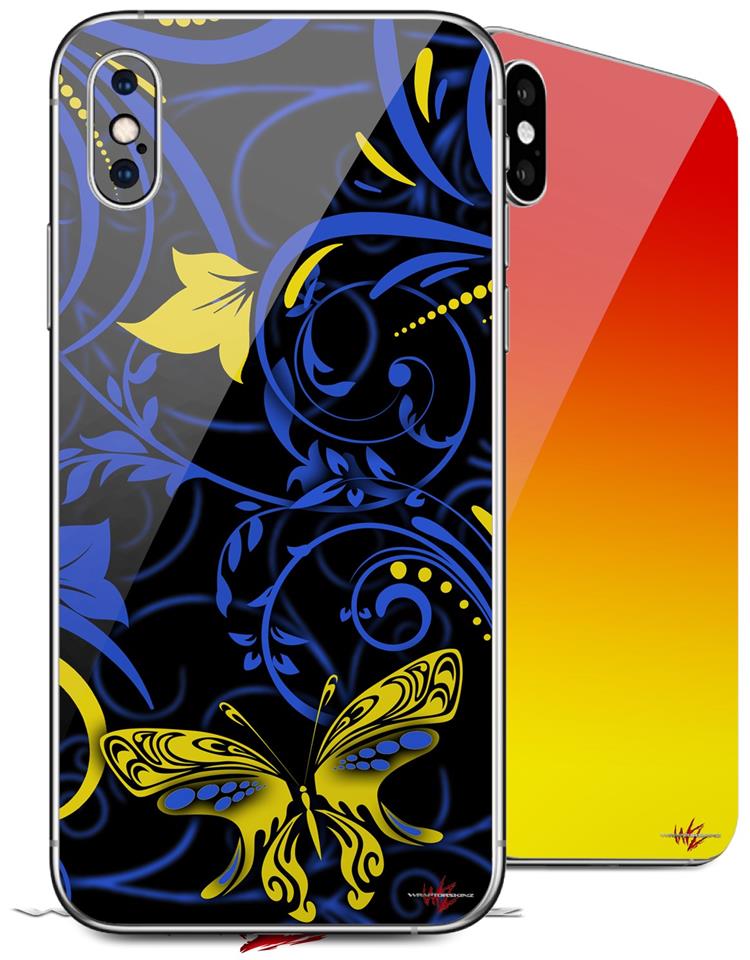 2 Decal style Skin Wraps set compatible with Apple iPhone X and XS Twisted Garden Blue and Yellow