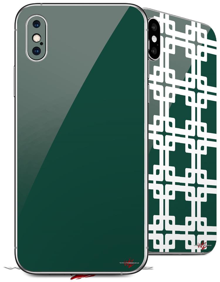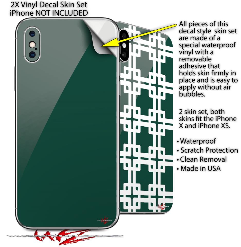 2 Decal style Skin Wraps set compatible with Apple iPhone X and XS Solids Collection Hunter Green