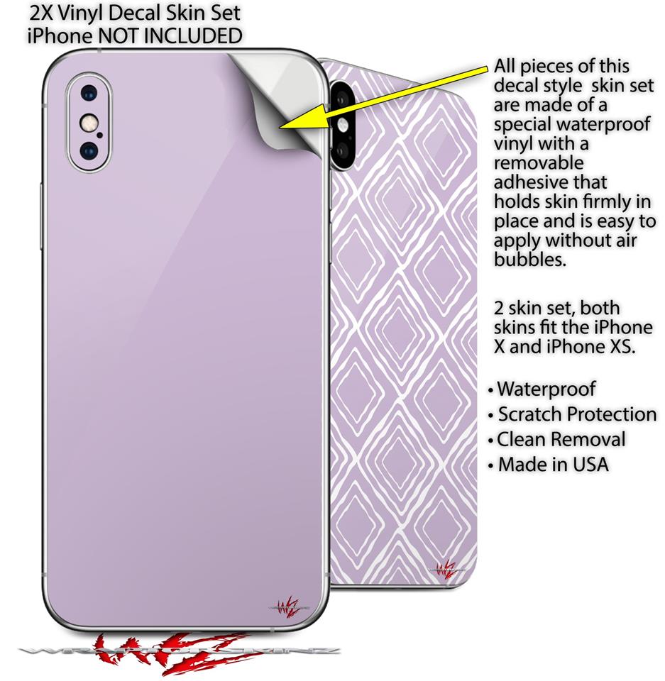 2 Decal style Skin Wraps set compatible with Apple iPhone X and XS Solids Collection Lavender