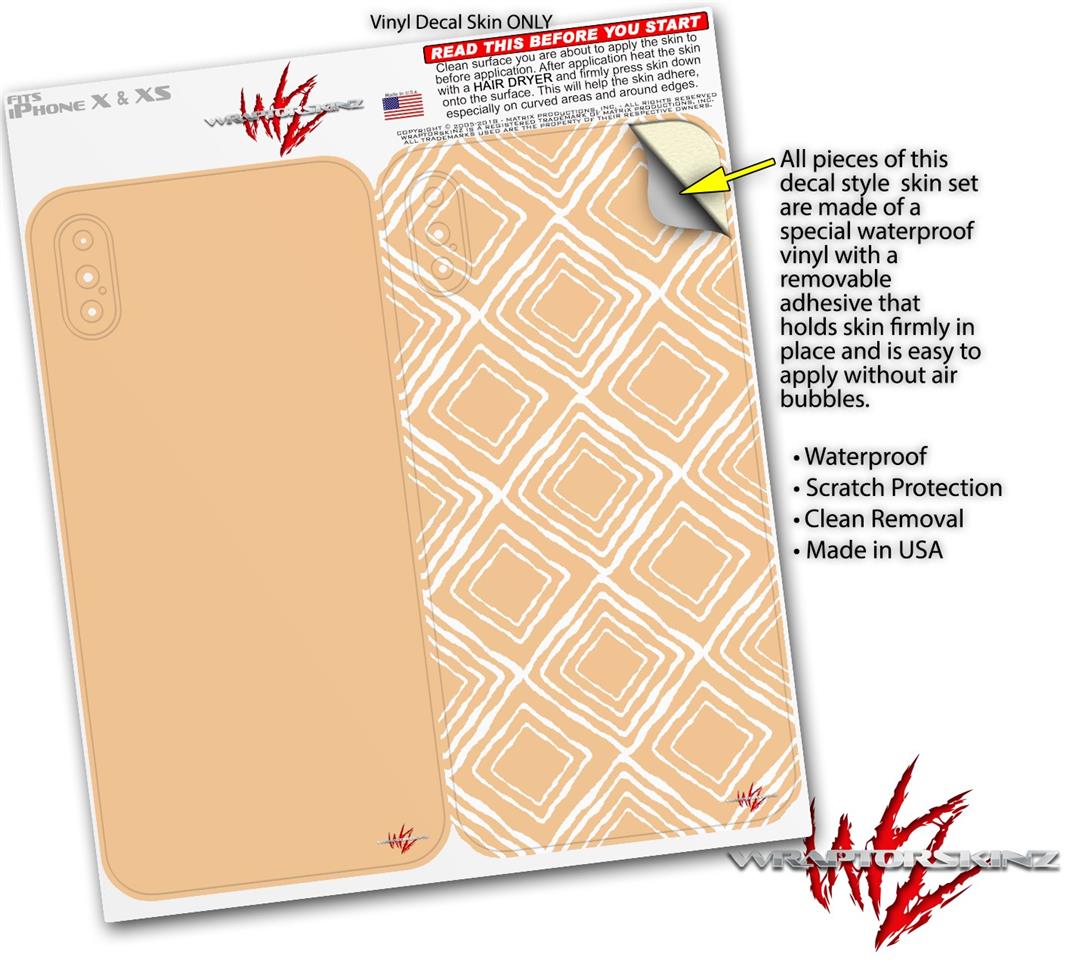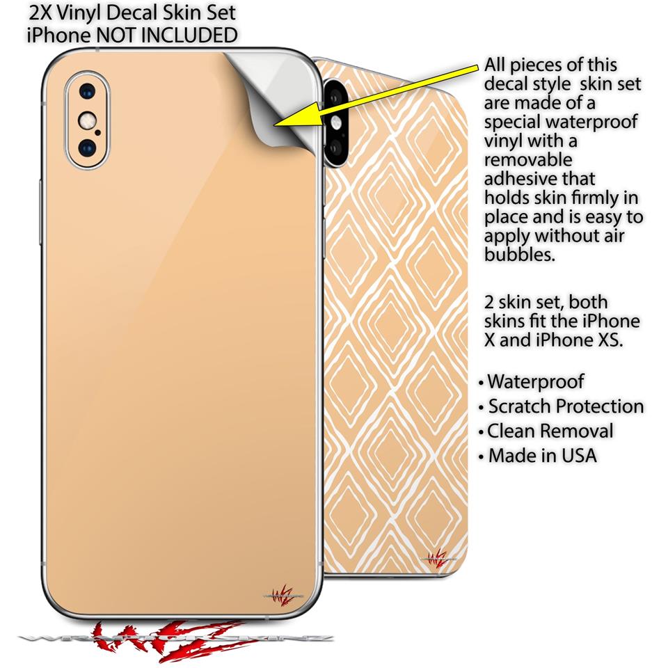 2 Decal style Skin Wraps set compatible with Apple iPhone X and XS Solids Collection Peach
