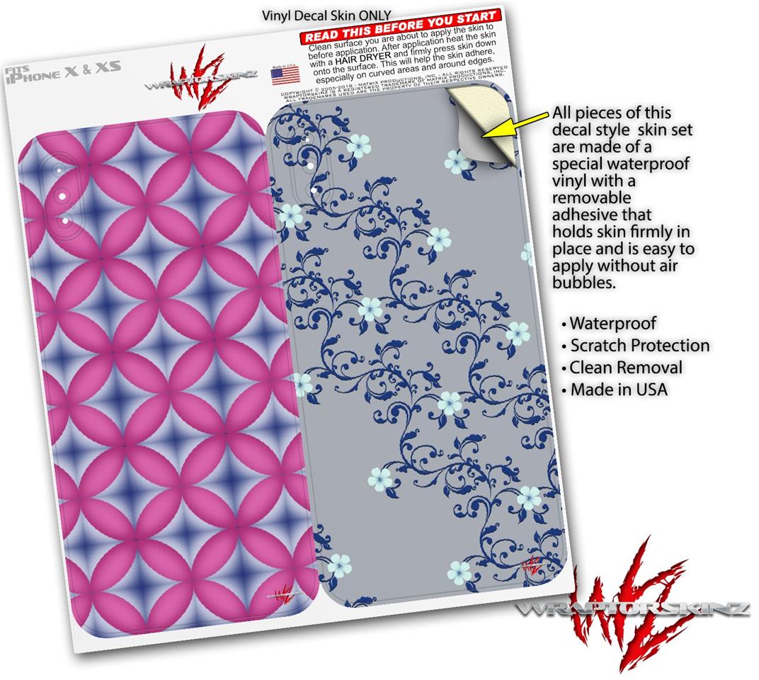 2 Decal style Skin Wraps set compatible with Apple iPhone X and XS Kalidoscope