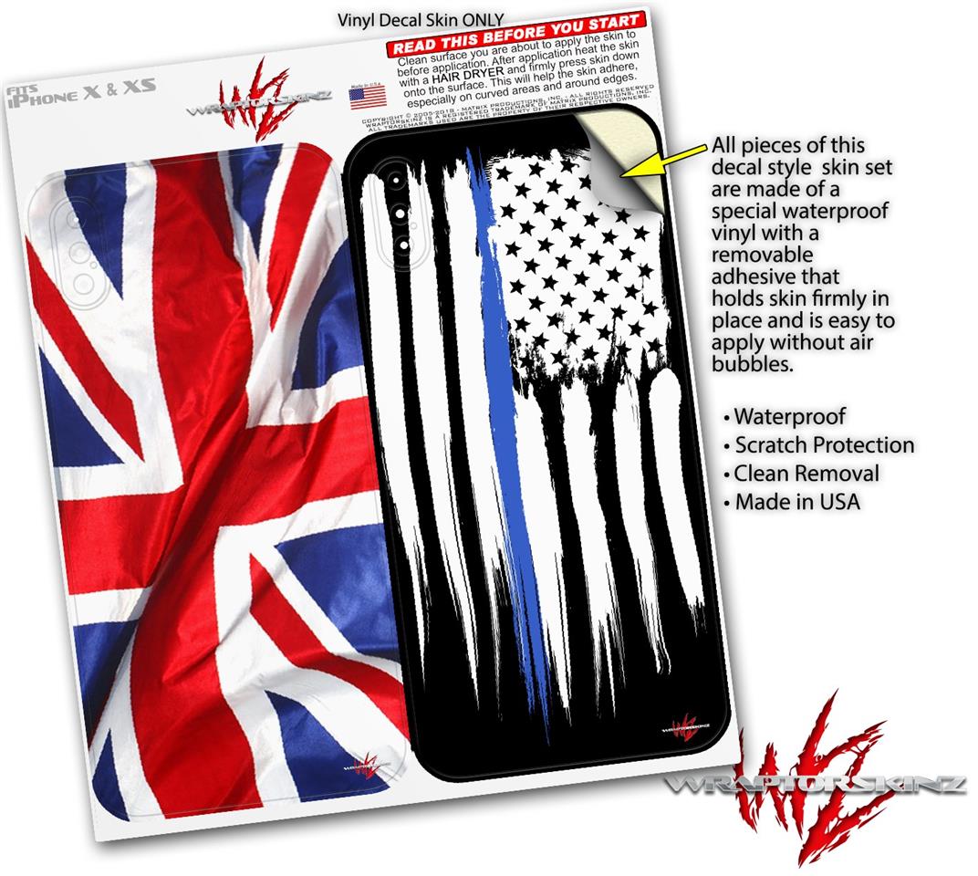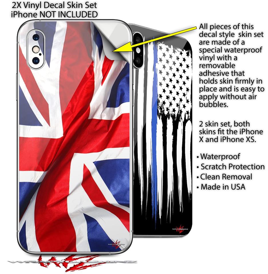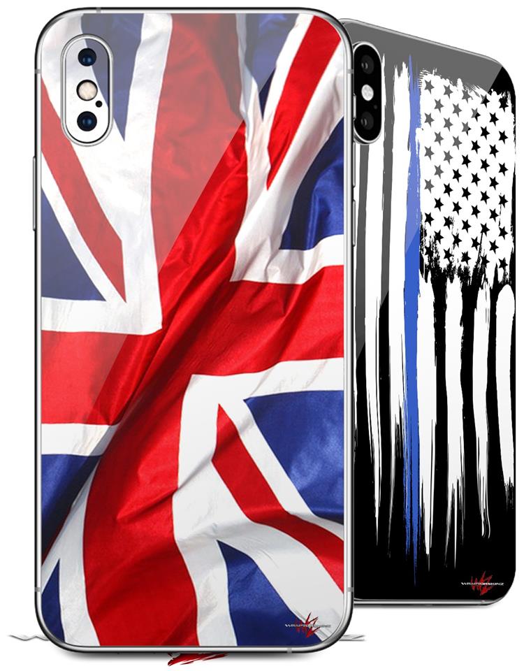 2 Decal style Skin Wraps set compatible with Apple iPhone X and XS Union Jack 01