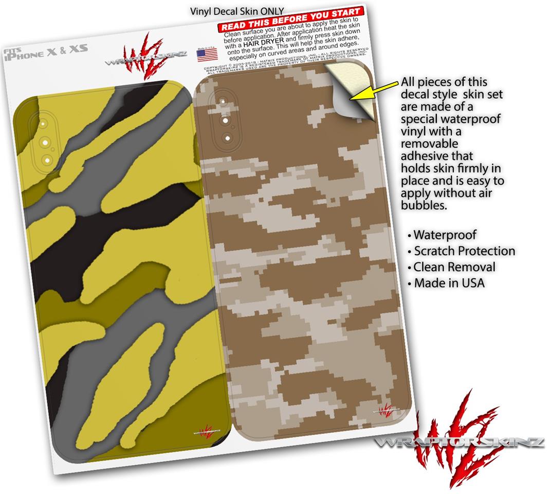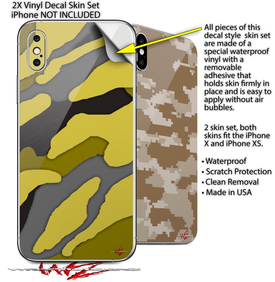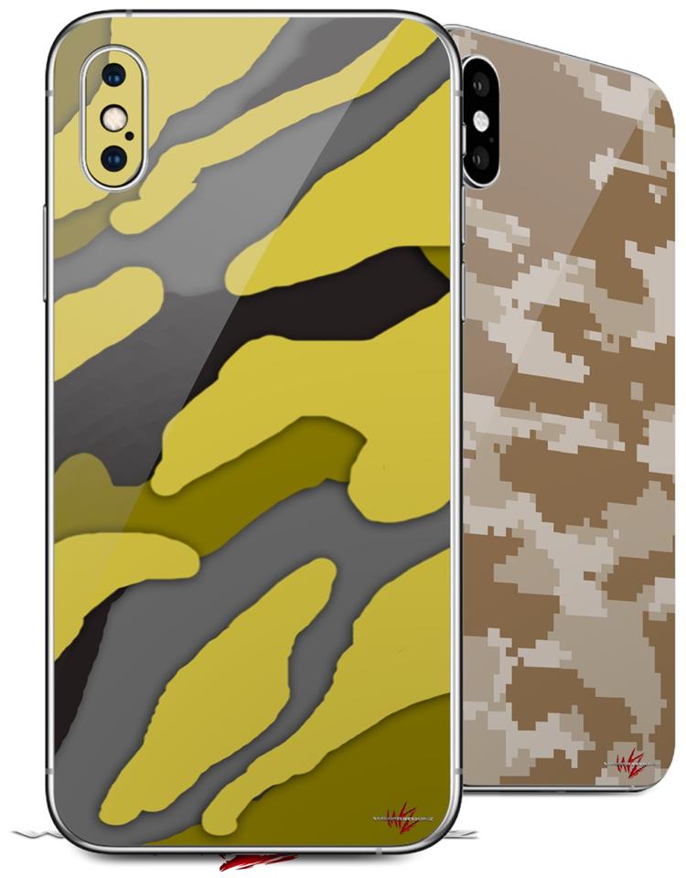 2 Decal style Skin Wraps set compatible with Apple iPhone X and XS Camouflage Yellow