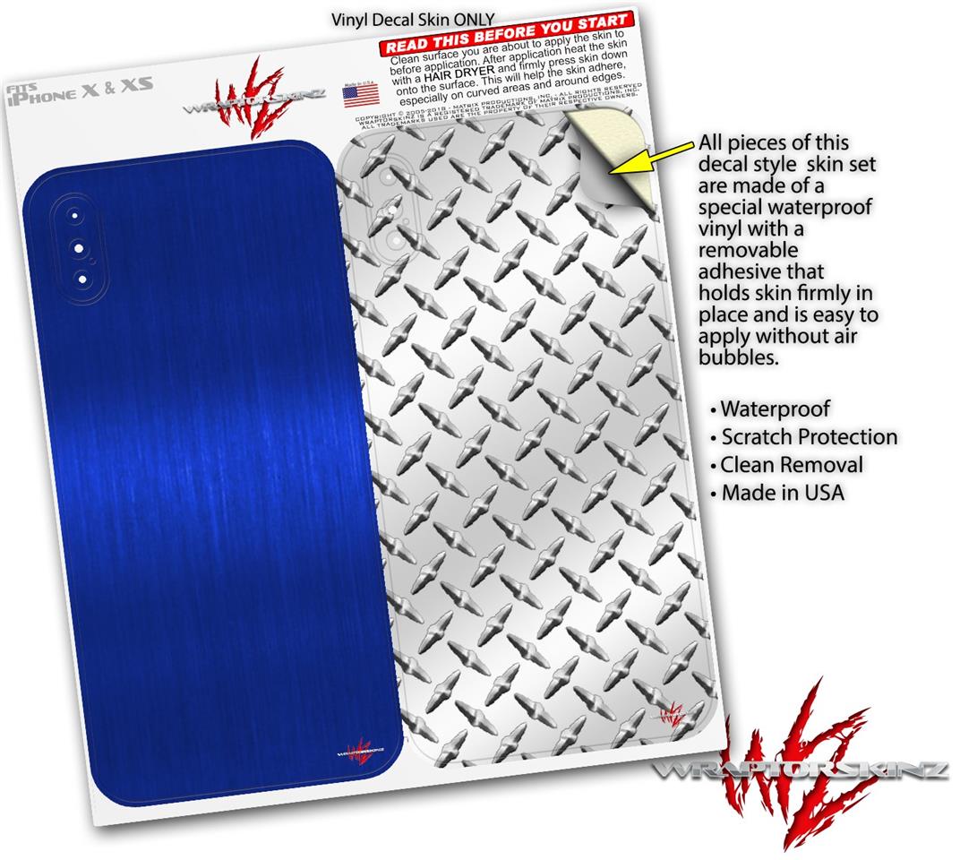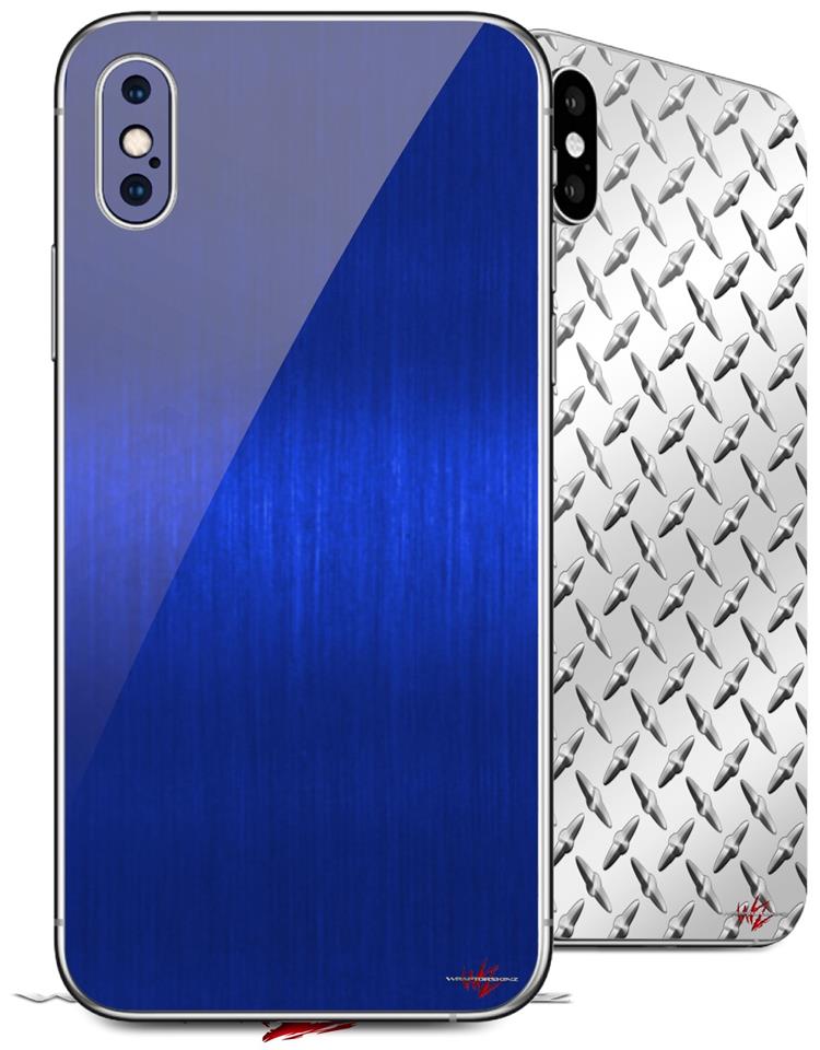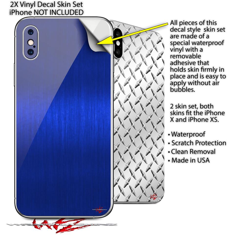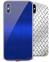 2 Decal style Skin Wraps set compatible with Apple iPhone X and XS Simulated Brushed Metal Blue
