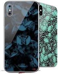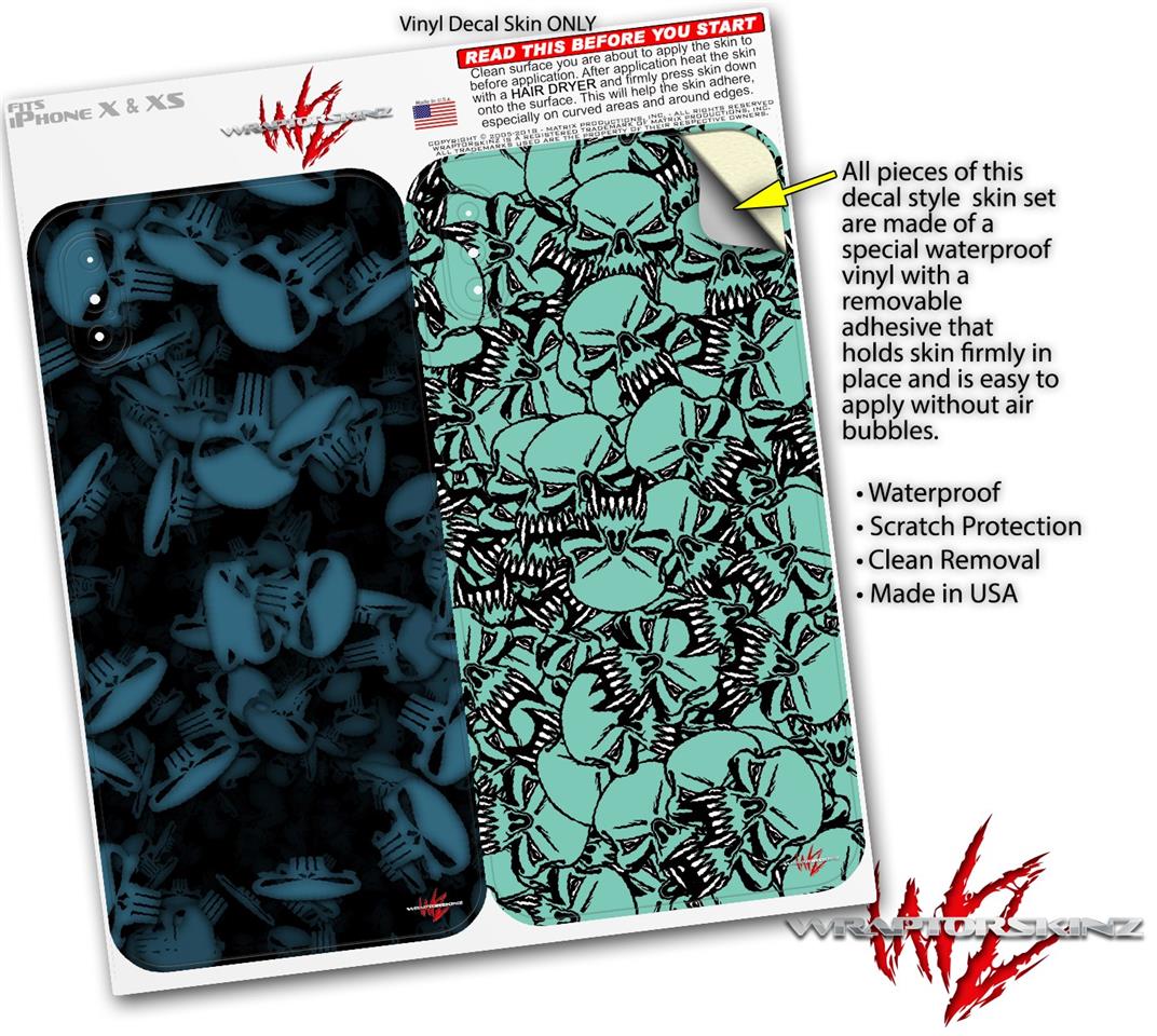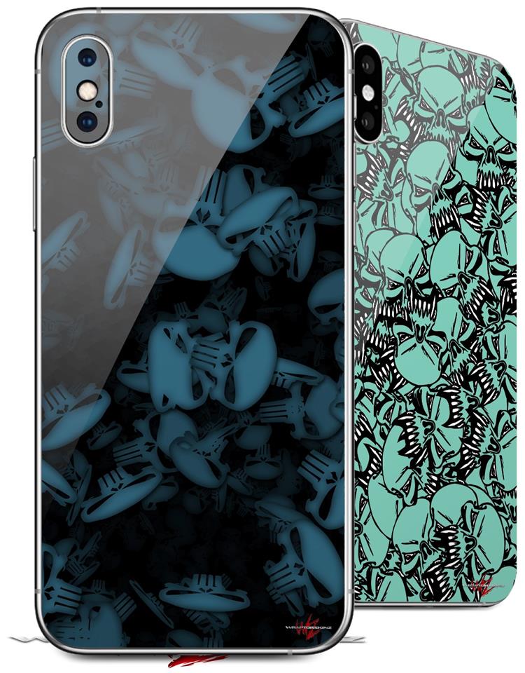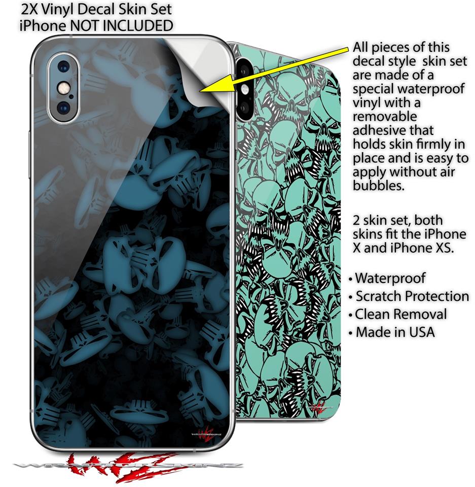 2 Decal style Skin Wraps set compatible with Apple iPhone X and XS Skulls Confetti Blue