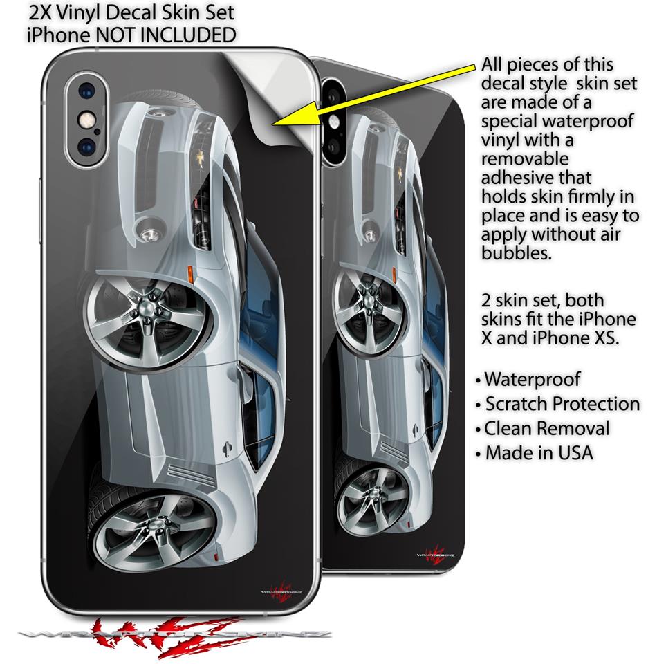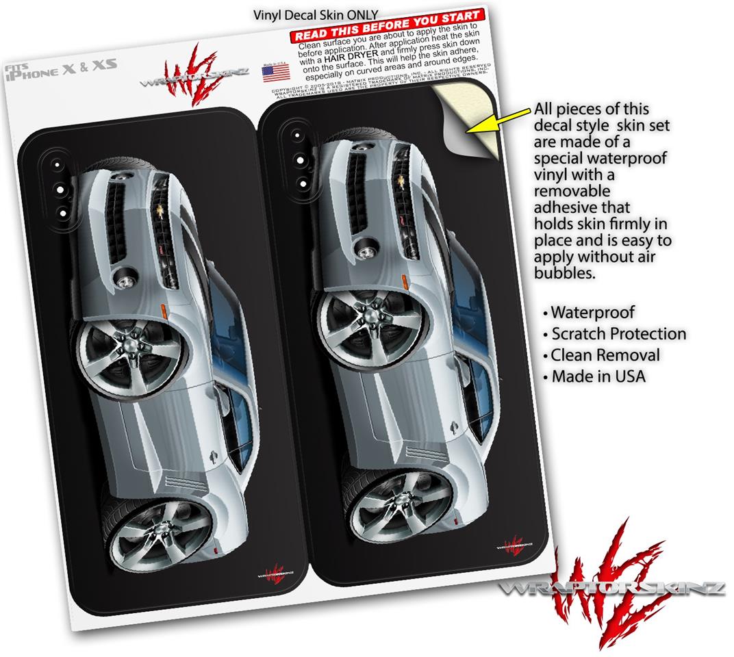 2 Decal style Skin Wraps set compatible with Apple iPhone X and XS 2010 Camaro RS Silver