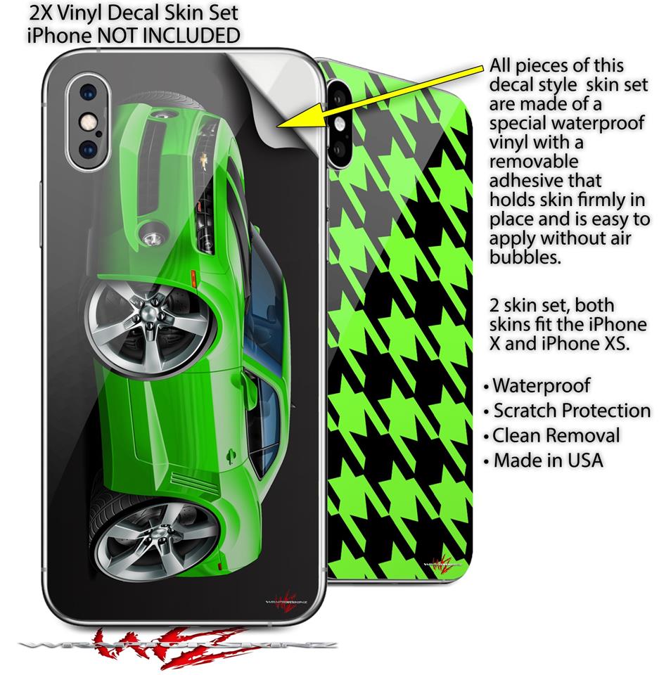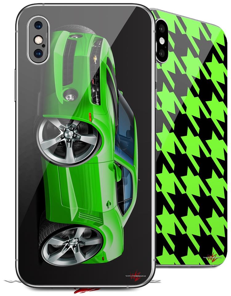 2 Decal style Skin Wraps set compatible with Apple iPhone X and XS 2010 Camaro RS Green