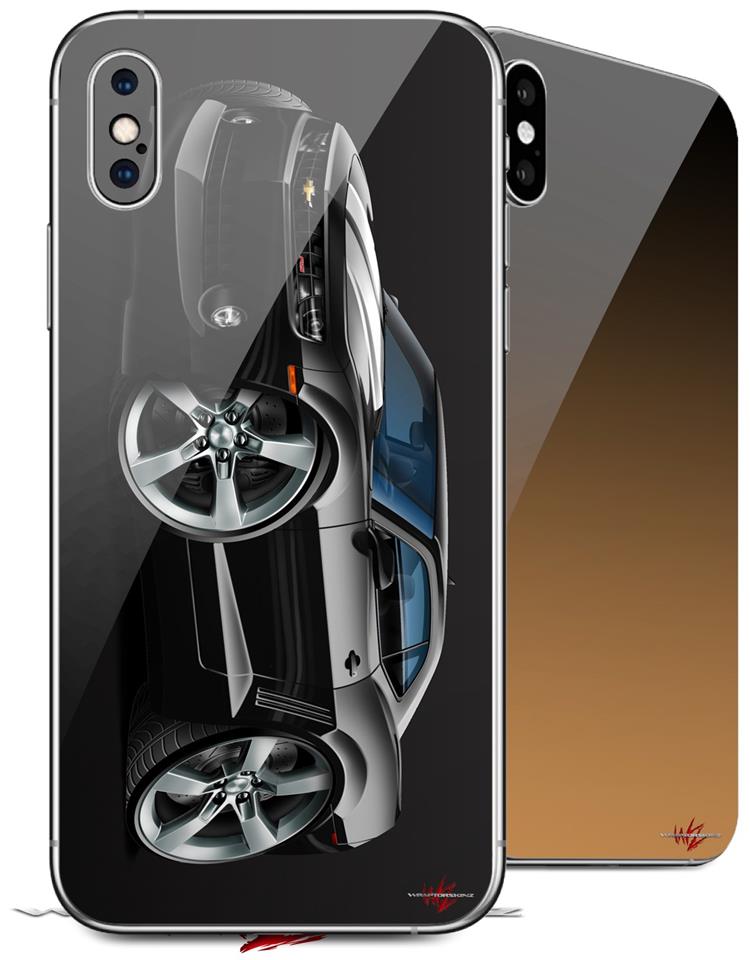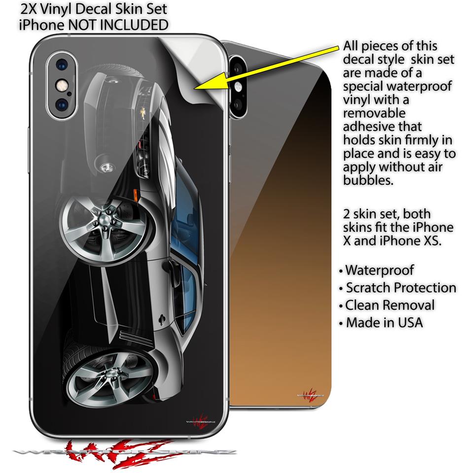 2 Decal style Skin Wraps set compatible with Apple iPhone X and XS 2010 Camaro RS Black