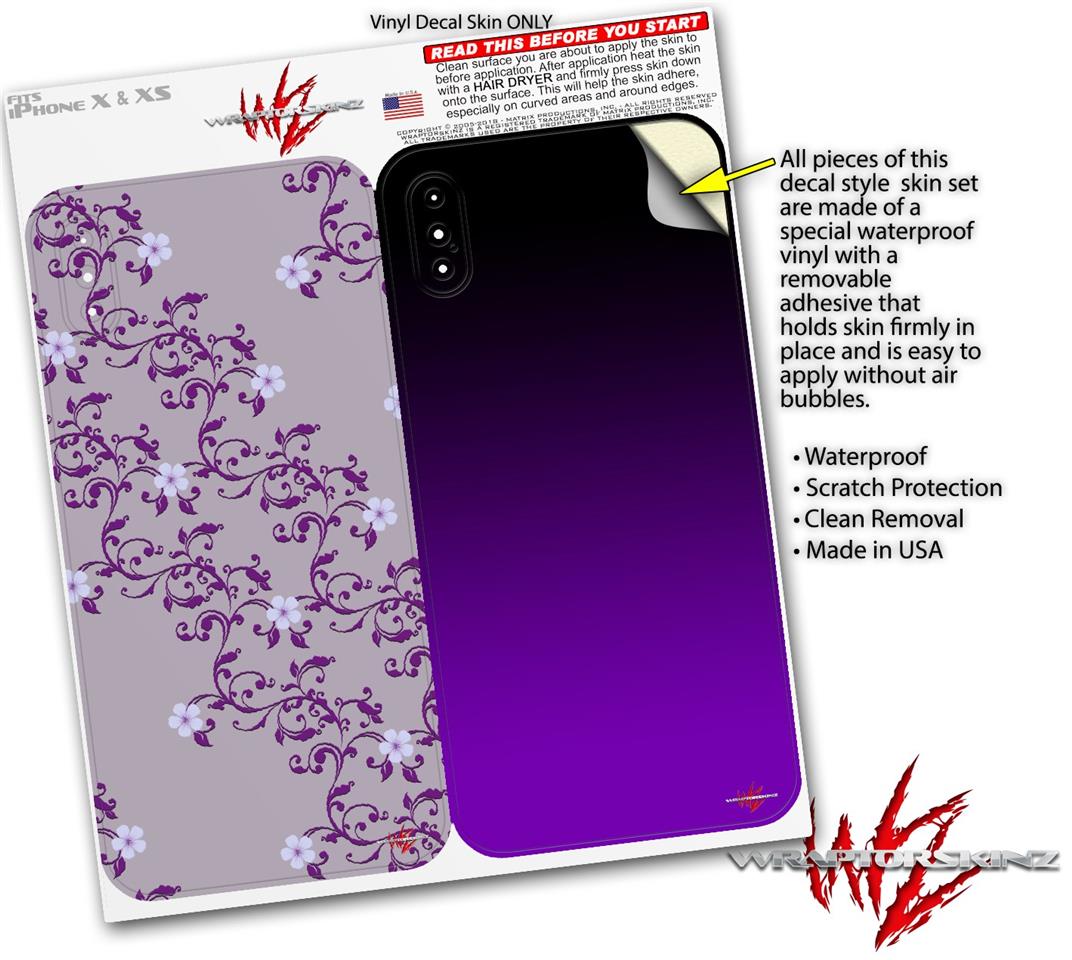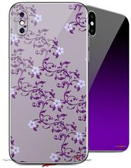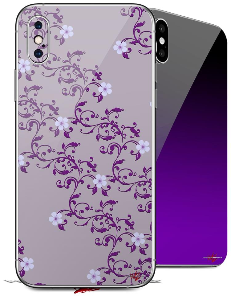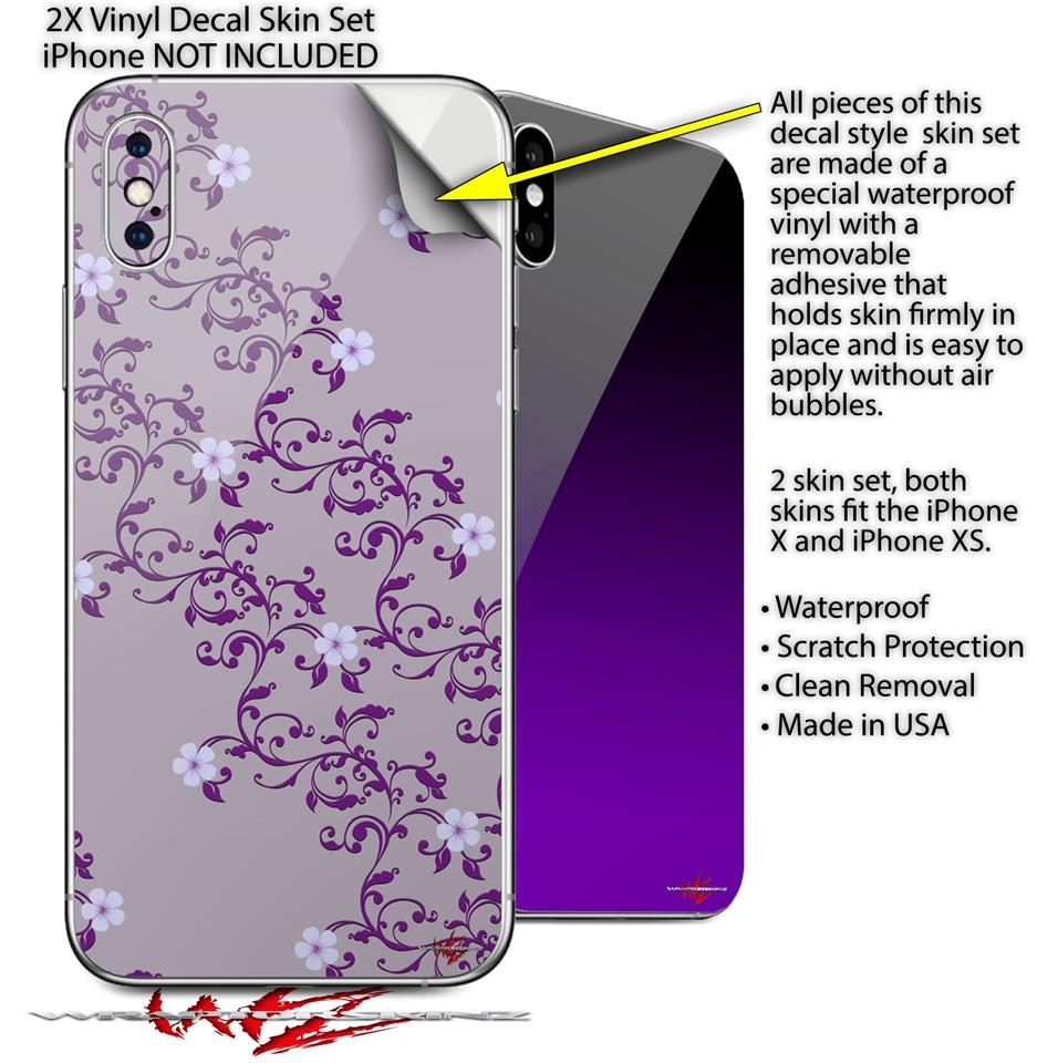 2 Decal style Skin Wraps set compatible with Apple iPhone X and XS Victorian Design Purple