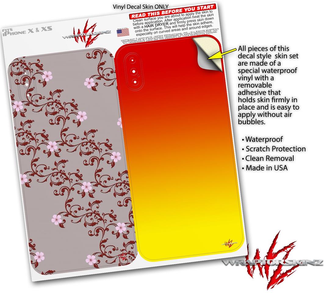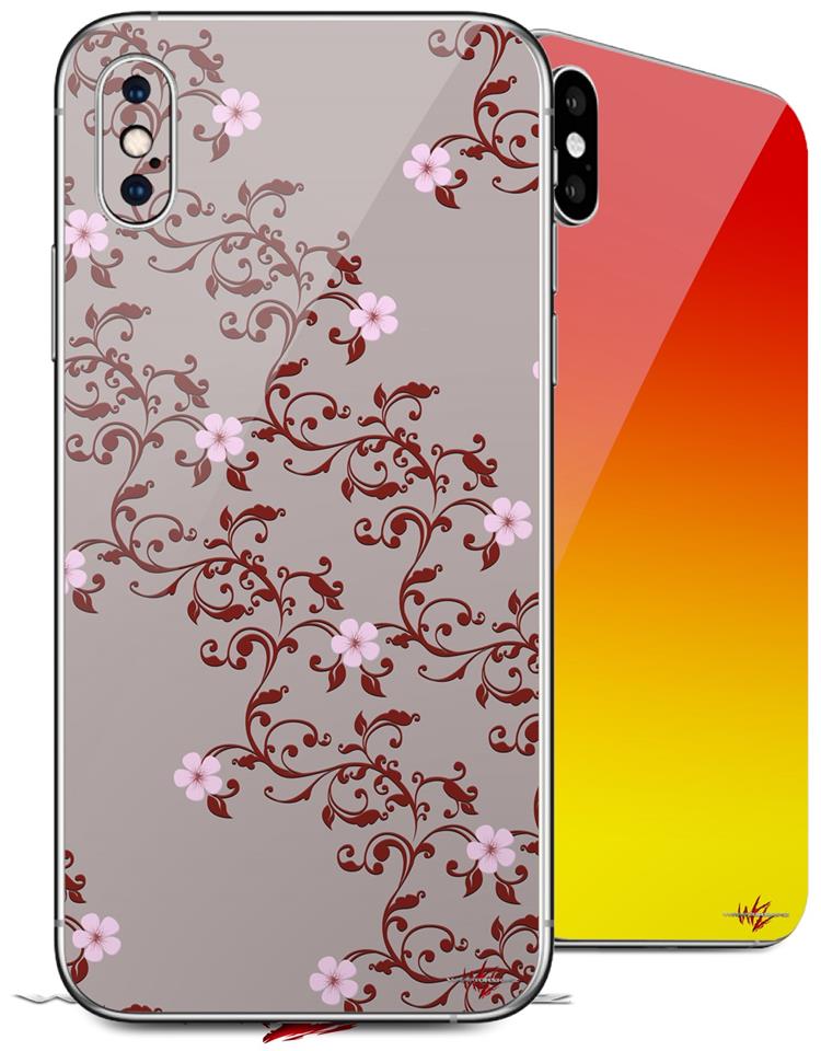 2 Decal style Skin Wraps set compatible with Apple iPhone X and XS Victorian Design Red