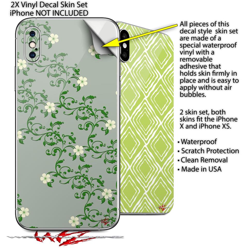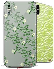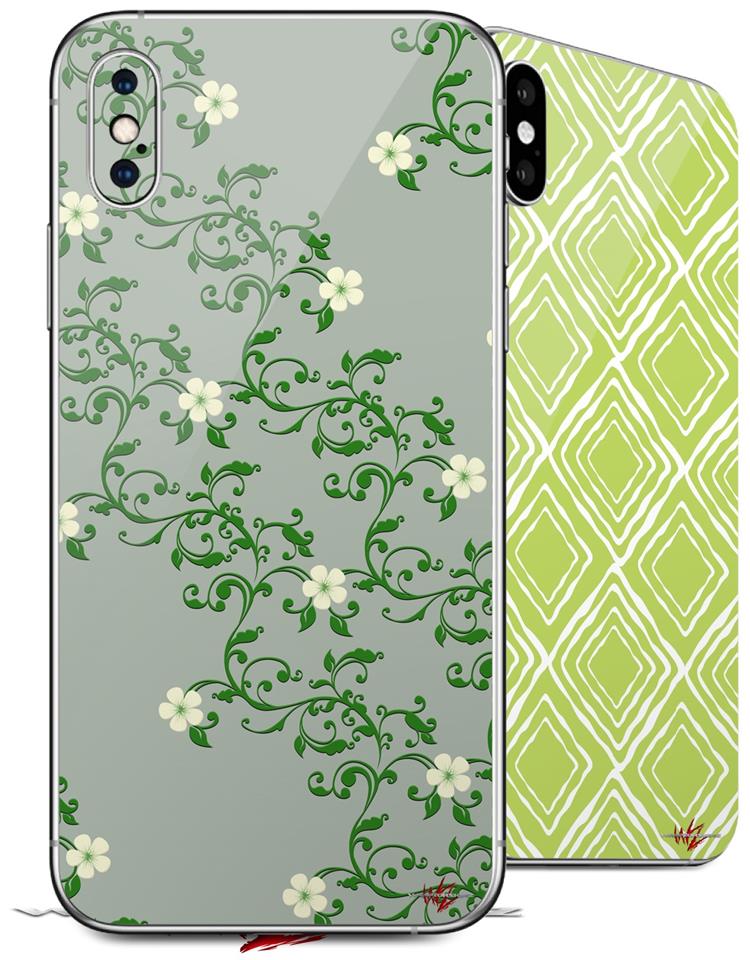 2 Decal style Skin Wraps set compatible with Apple iPhone X and XS Victorian Design Green