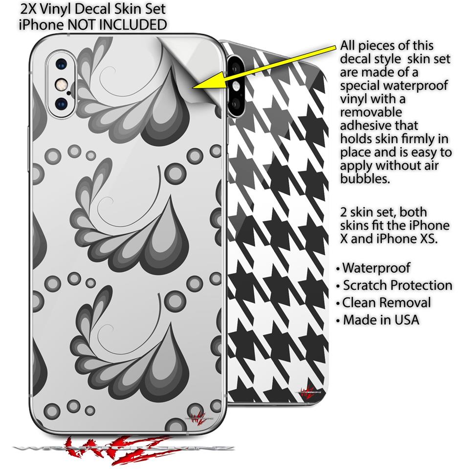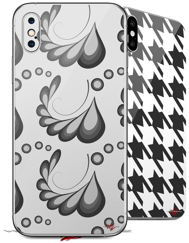 2 Decal style Skin Wraps set compatible with Apple iPhone X and XS Petals Gray