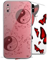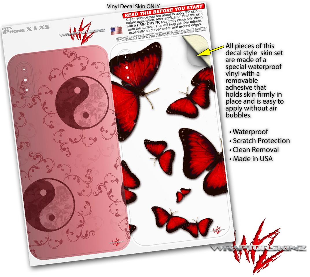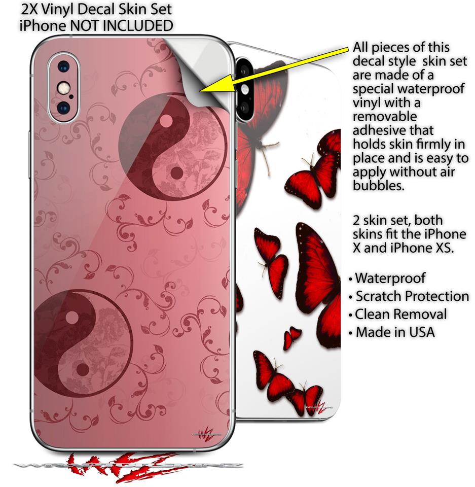 2 Decal style Skin Wraps set compatible with Apple iPhone X and XS Feminine Yin Yang Red