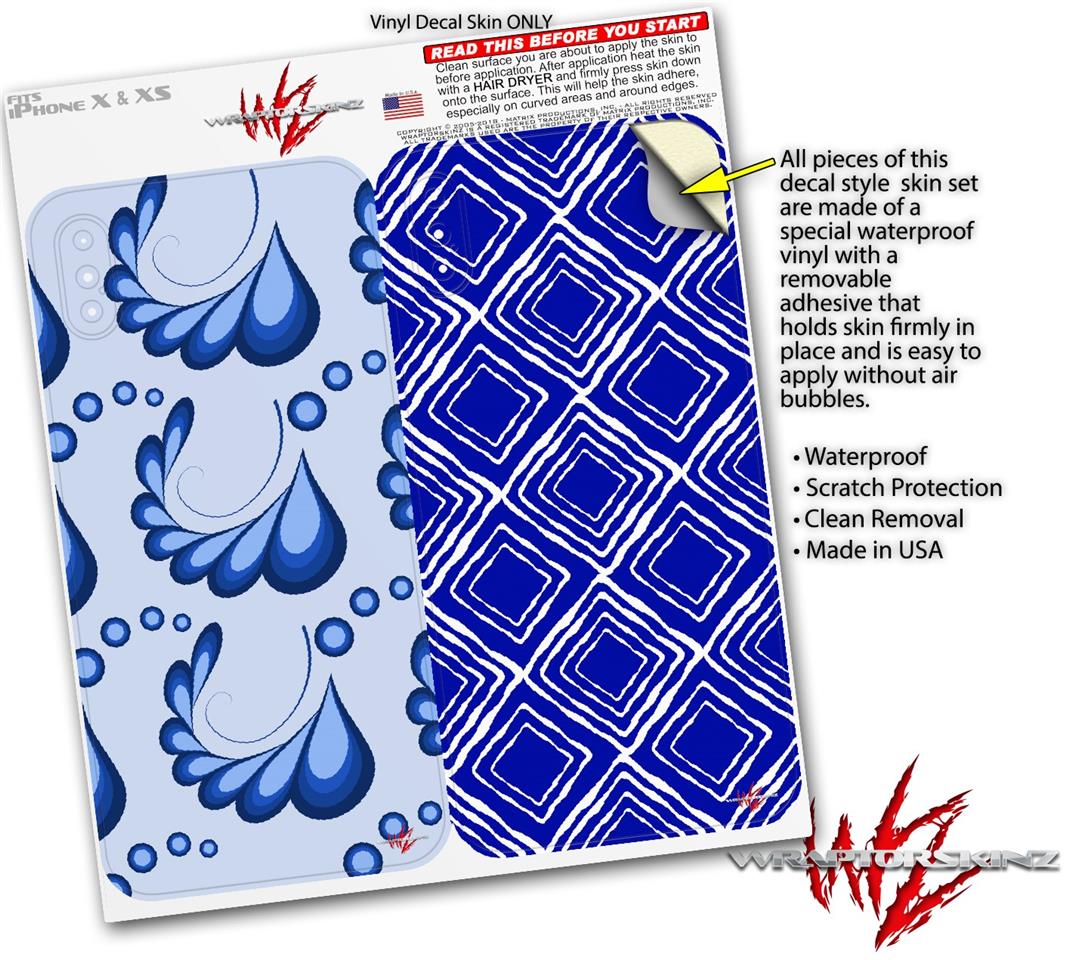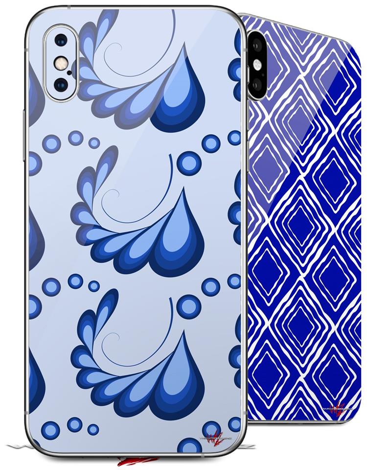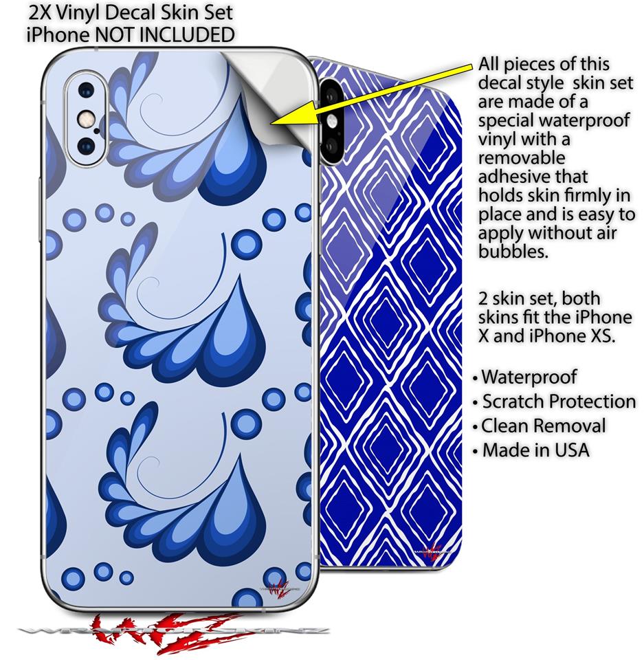 2 Decal style Skin Wraps set compatible with Apple iPhone X and XS Petals Blue