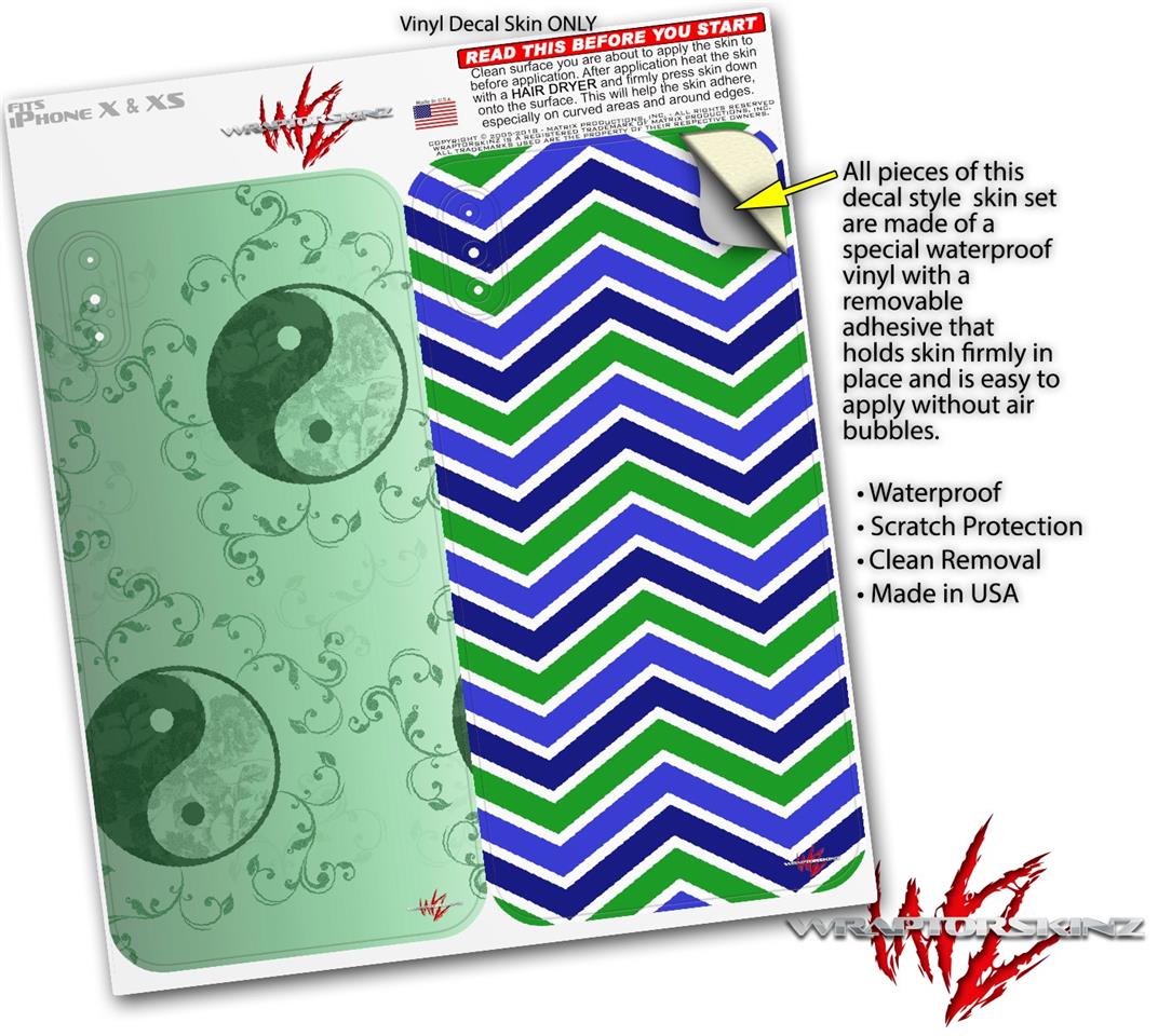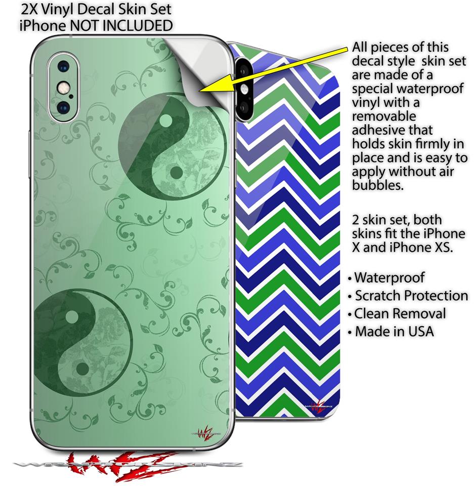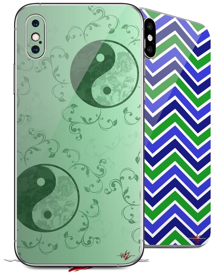 2 Decal style Skin Wraps set compatible with Apple iPhone X and XS Feminine Yin Yang Green