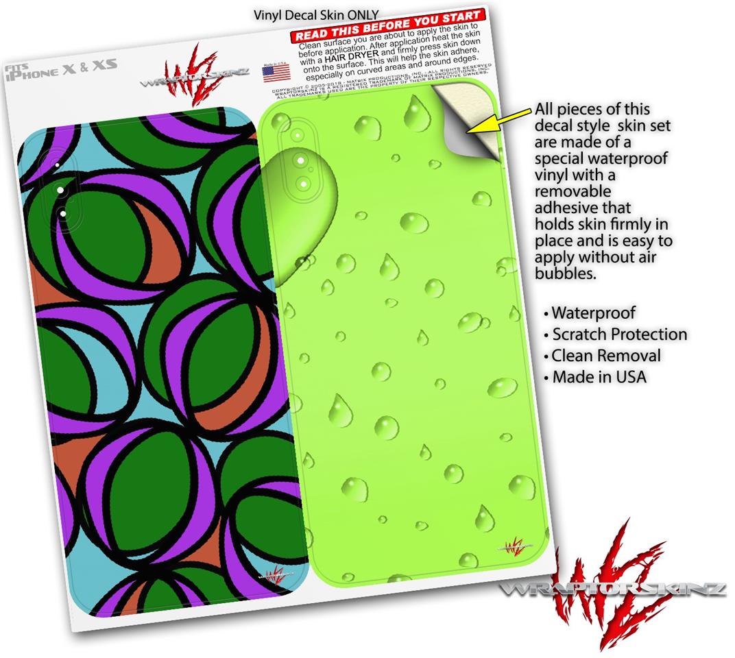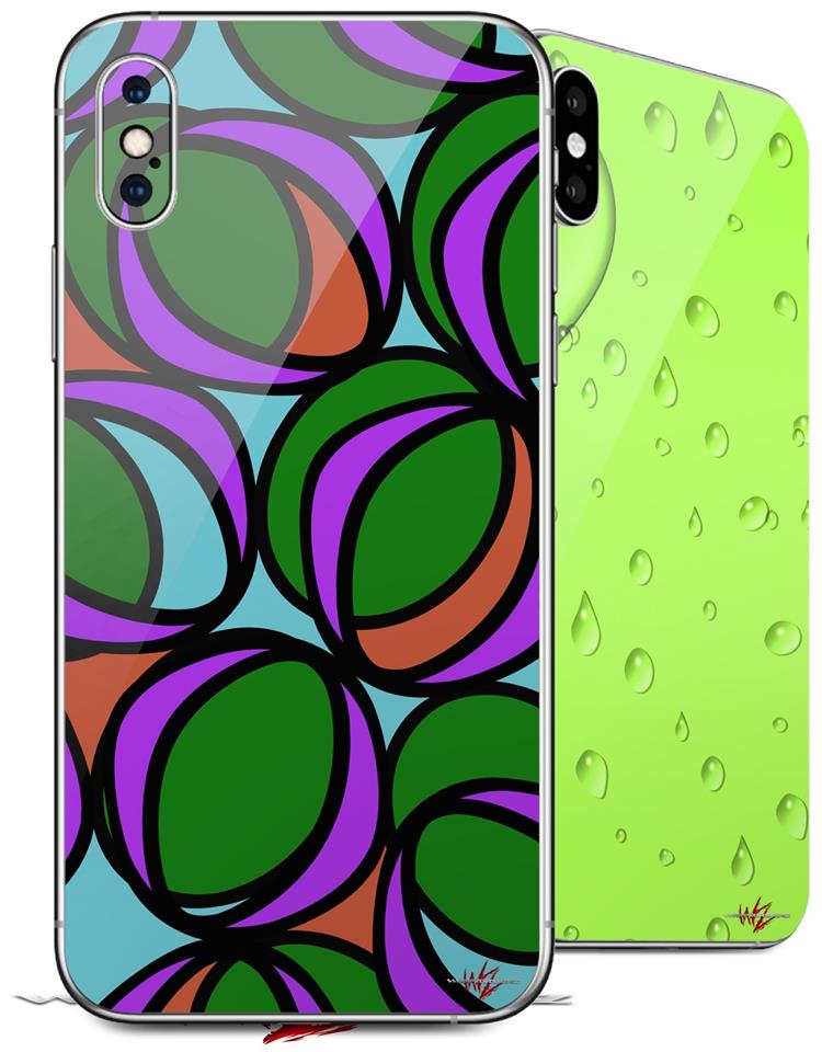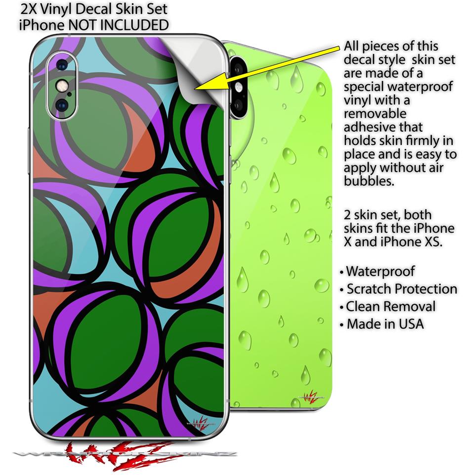 2 Decal style Skin Wraps set compatible with Apple iPhone X and XS Crazy Dots 03