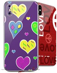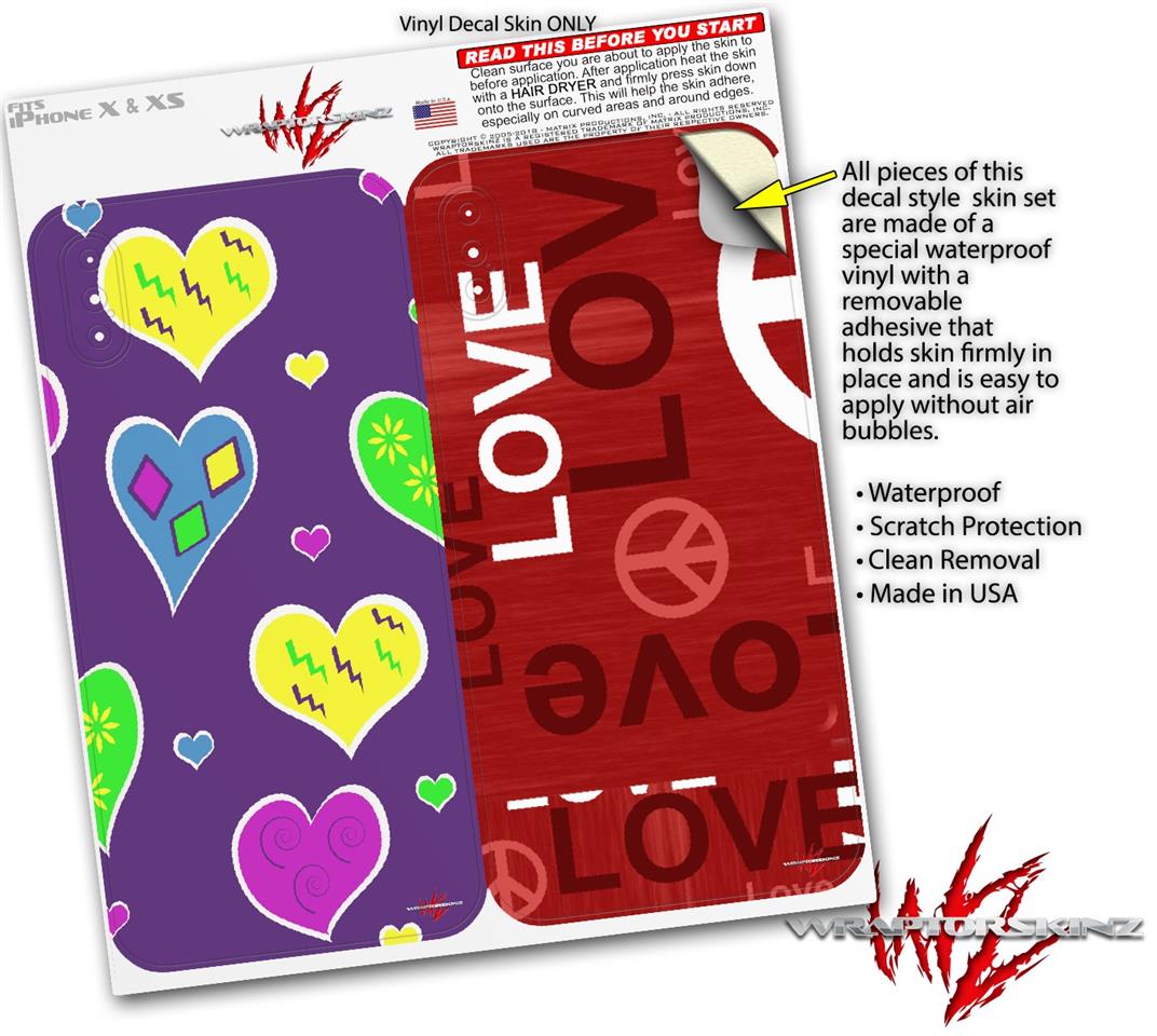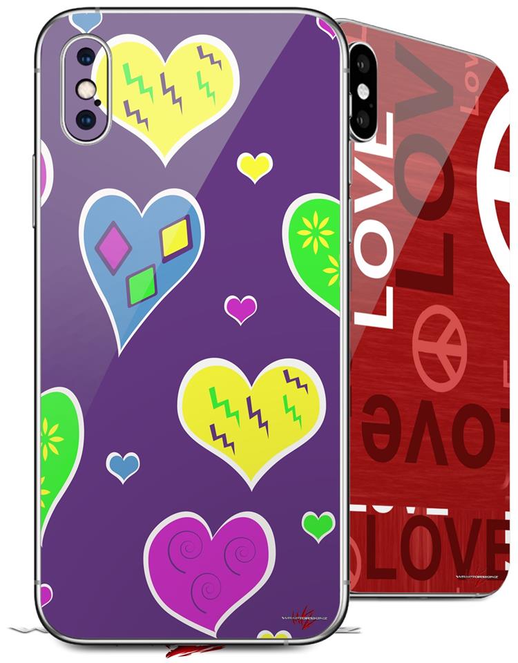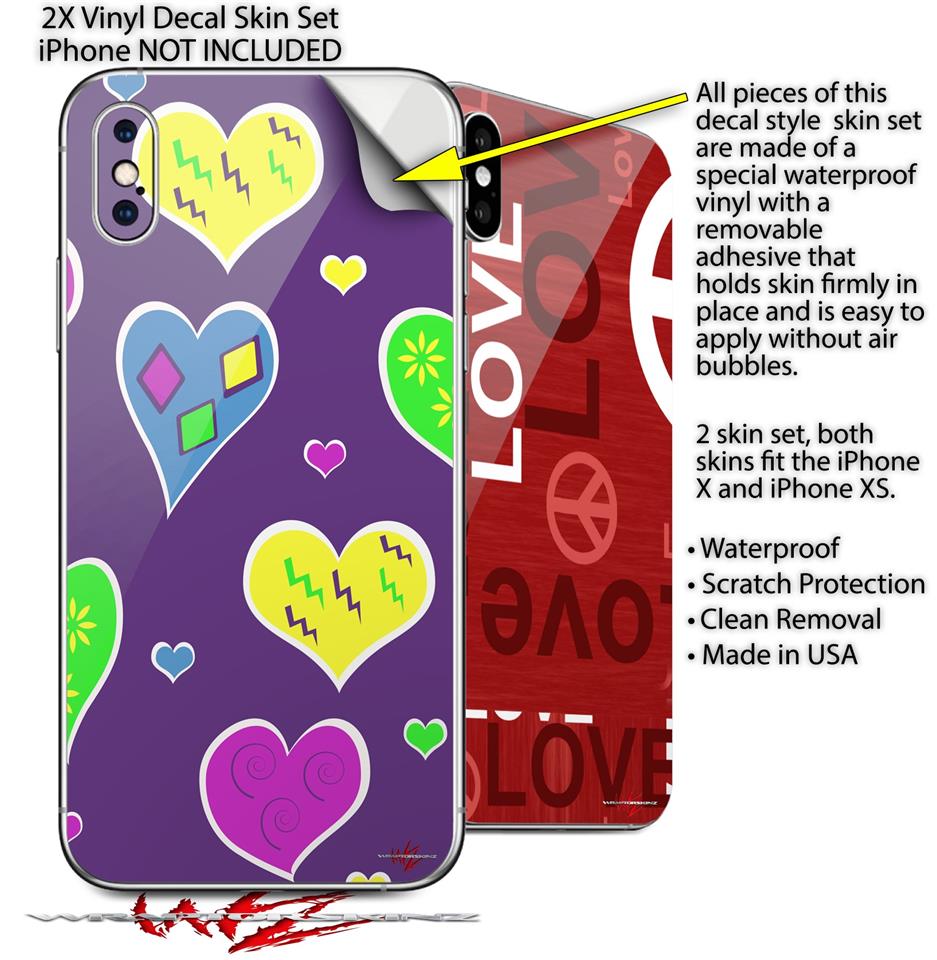 2 Decal style Skin Wraps set compatible with Apple iPhone X and XS Crazy Hearts