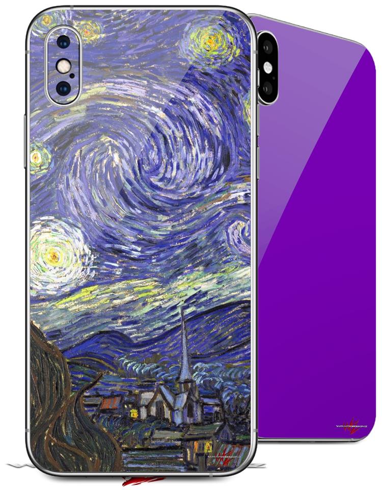 2 Decal style Skin Wraps set compatible with Apple iPhone X and XS Vincent Van Gogh Starry Night
