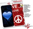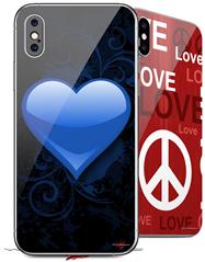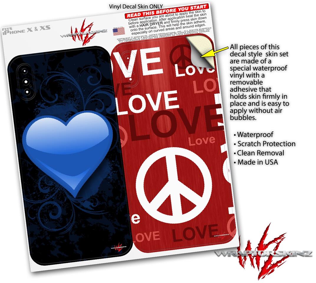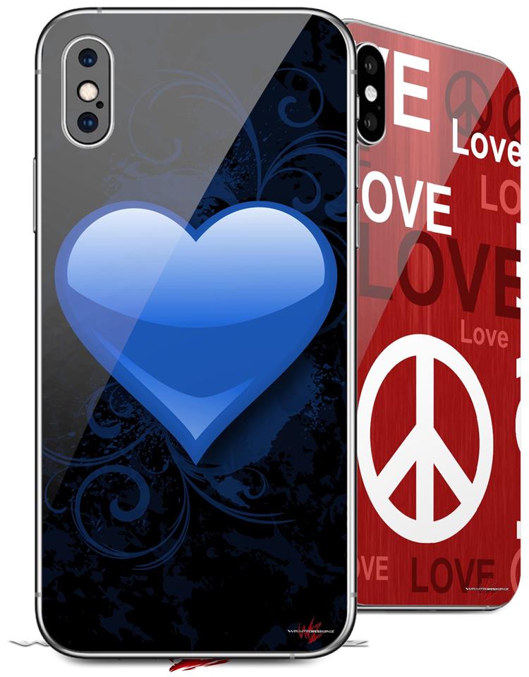 2 Decal style Skin Wraps set compatible with Apple iPhone X and XS Glass Heart Grunge Blue