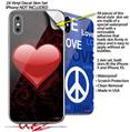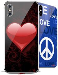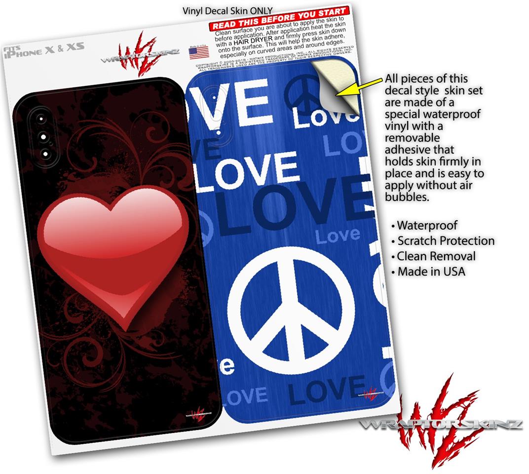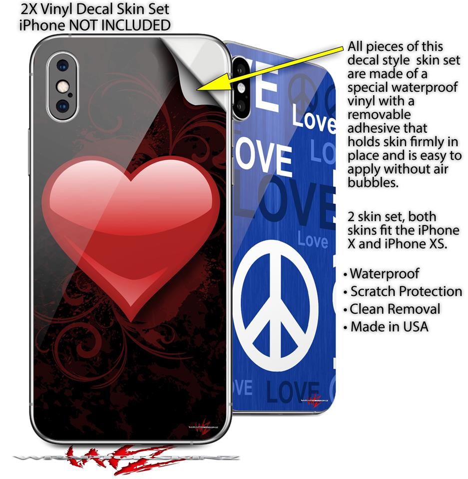 2 Decal style Skin Wraps set compatible with Apple iPhone X and XS Glass Heart Grunge Red