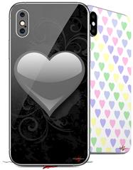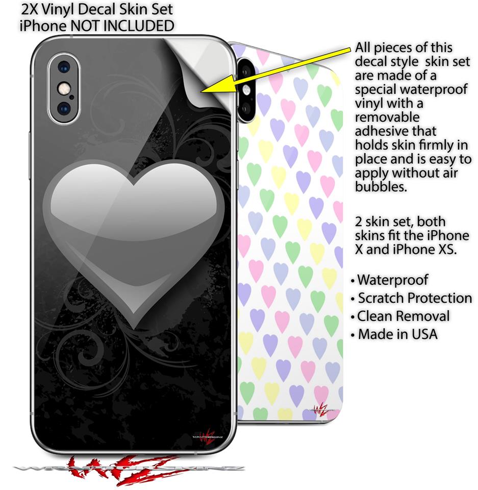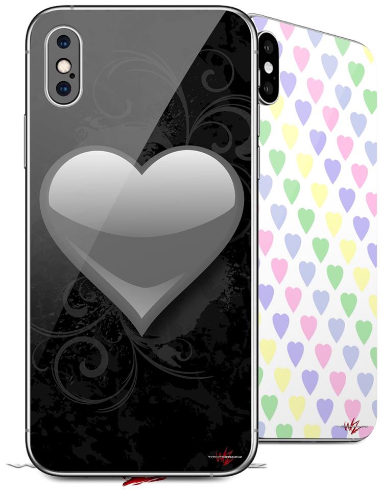 2 Decal style Skin Wraps set compatible with Apple iPhone X and XS Glass Heart Grunge Gray