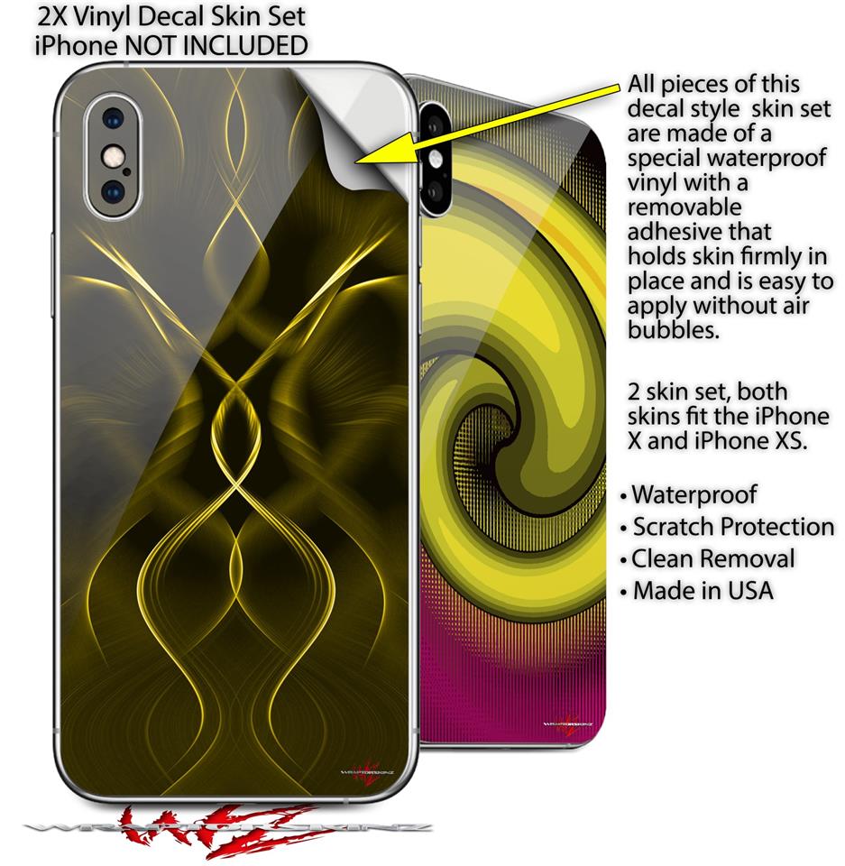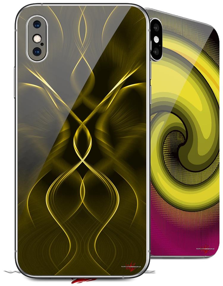 2 Decal style Skin Wraps set compatible with Apple iPhone X and XS Abstract 01 Yellow
