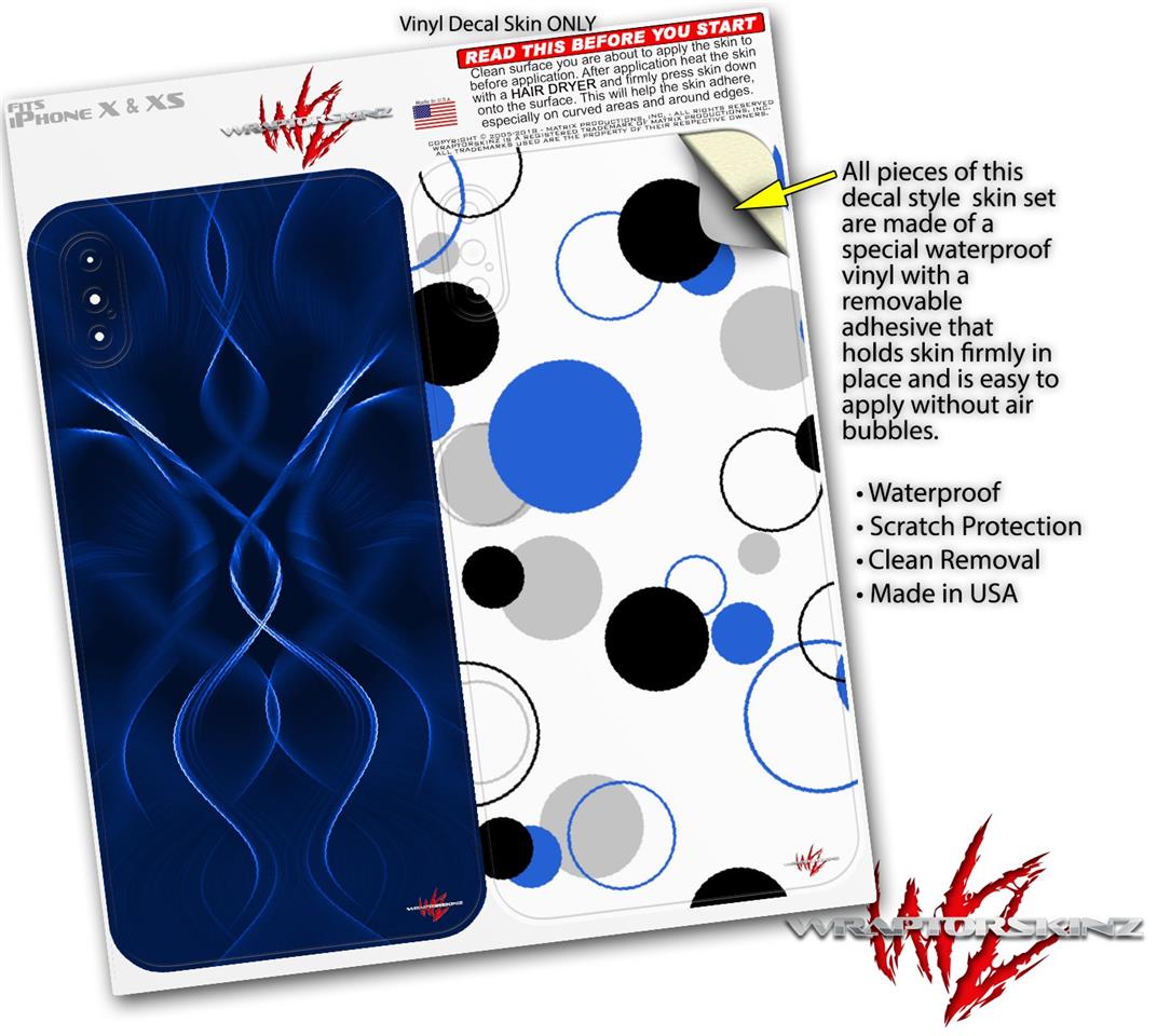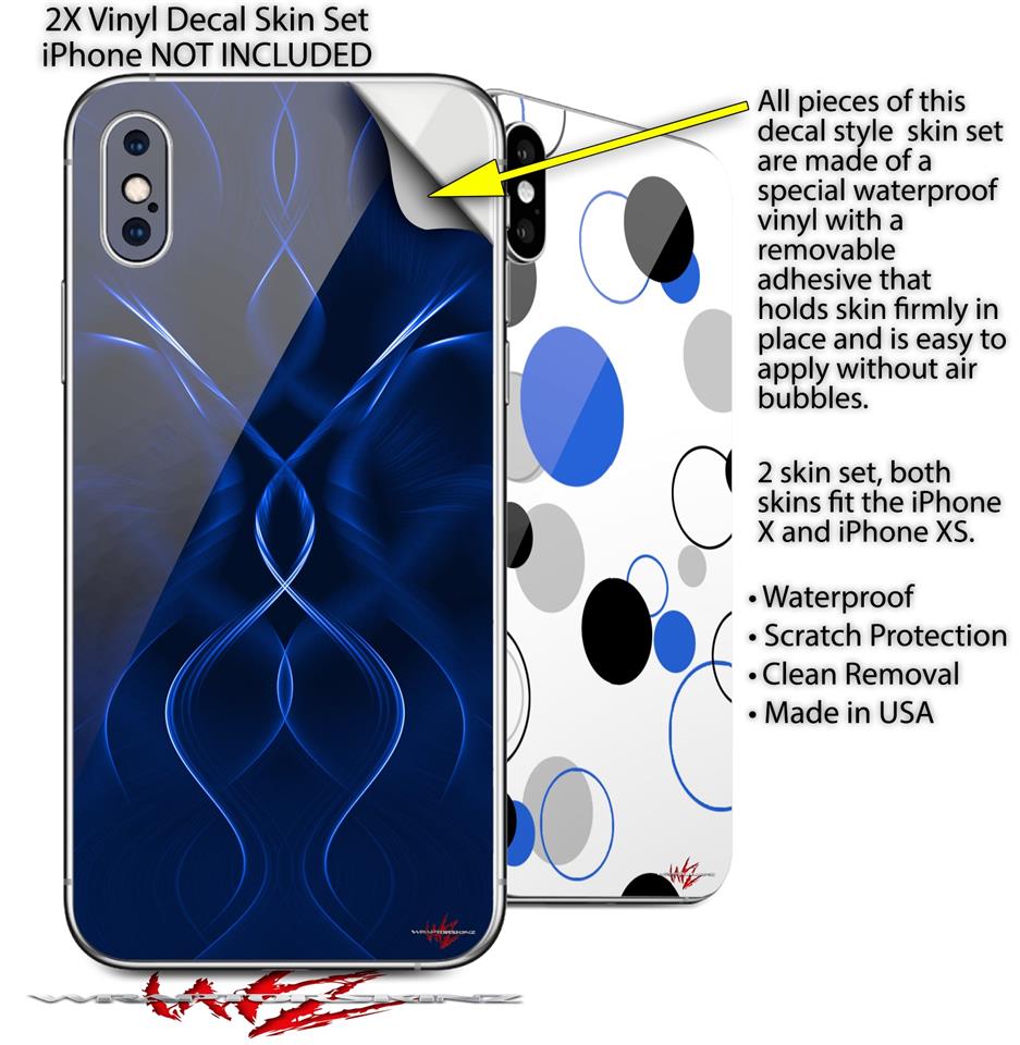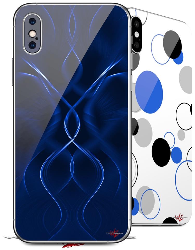2 Decal style Skin Wraps set compatible with Apple iPhone X and XS Abstract 01 Blue
