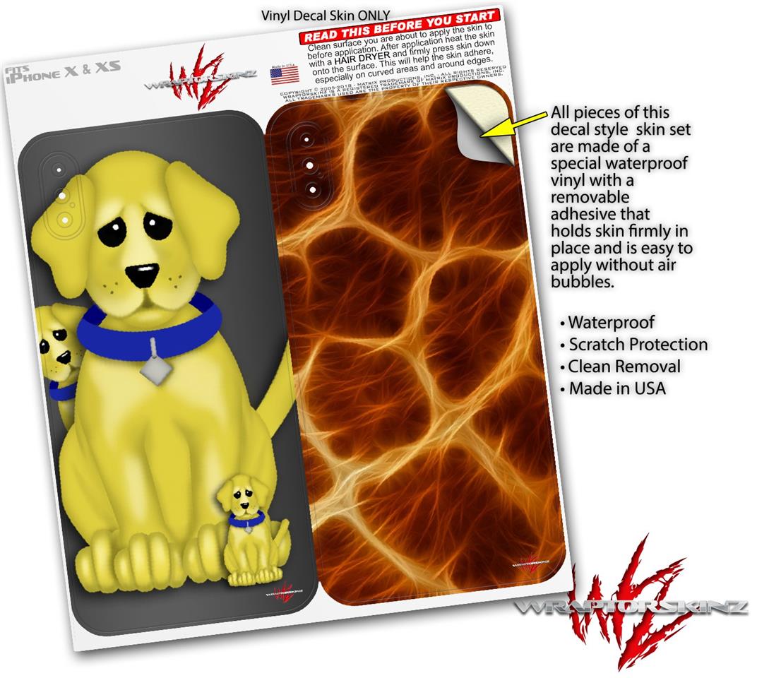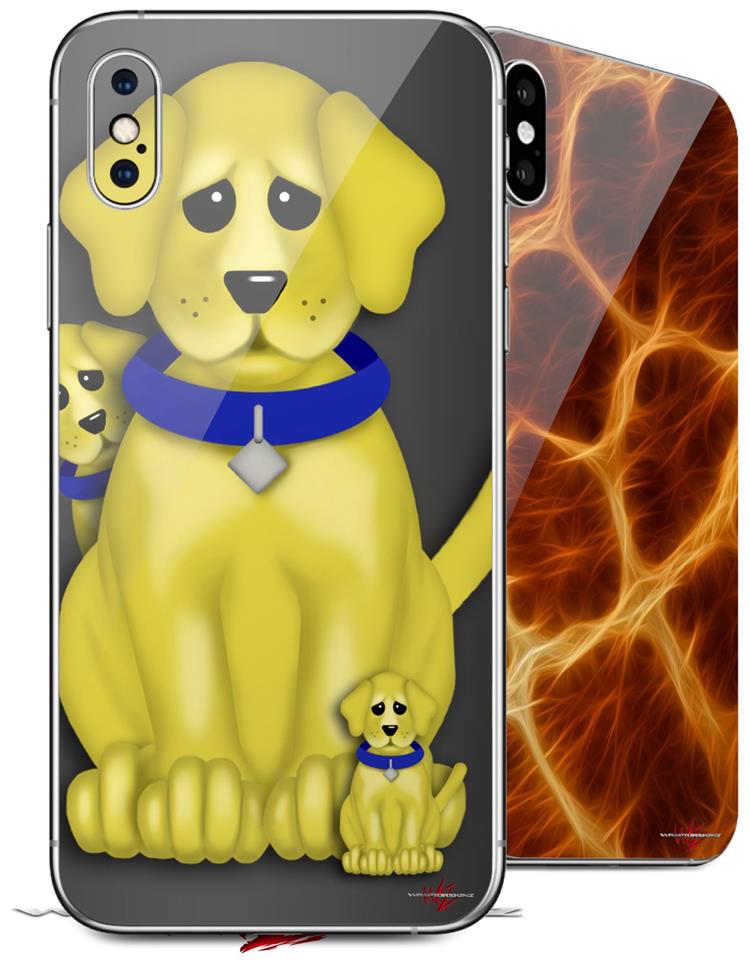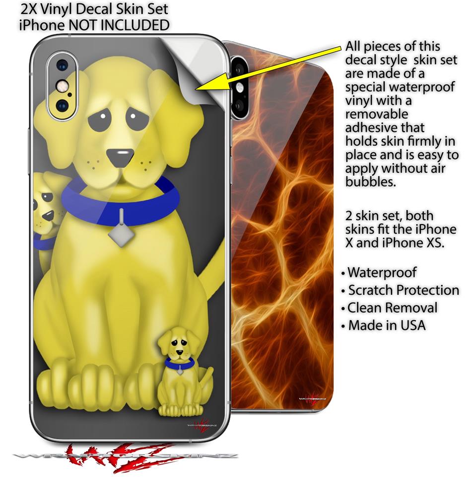 2 Decal style Skin Wraps set compatible with Apple iPhone X and XS Puppy Dogs on Black
