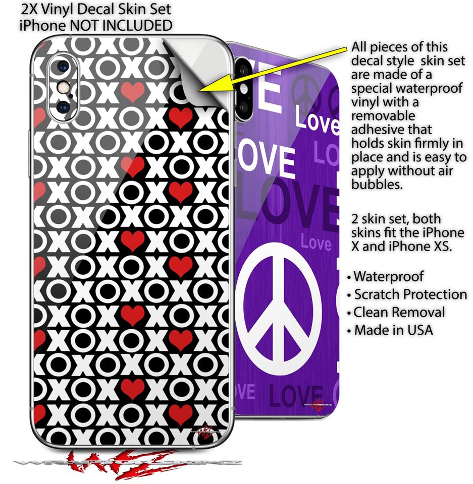 2 Decal style Skin Wraps set compatible with Apple iPhone X and XS XO Hearts