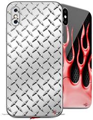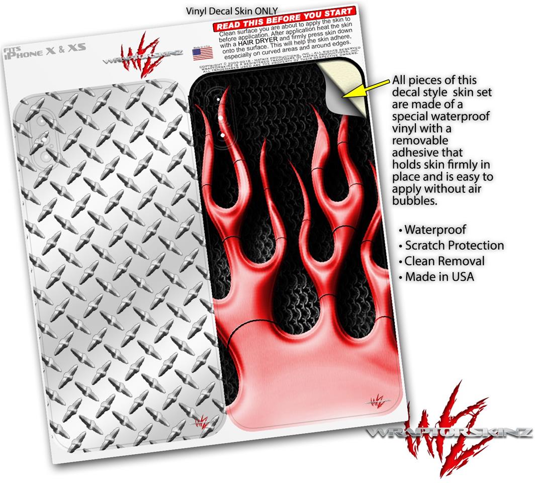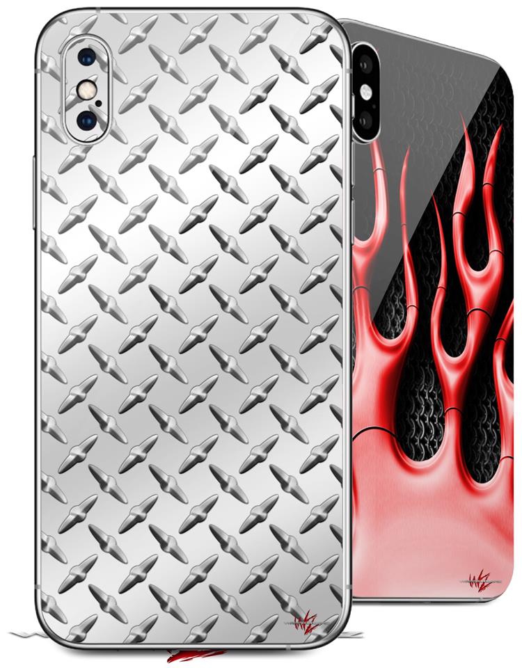 2 Decal style Skin Wraps set compatible with Apple iPhone X and XS Diamond Plate Metal