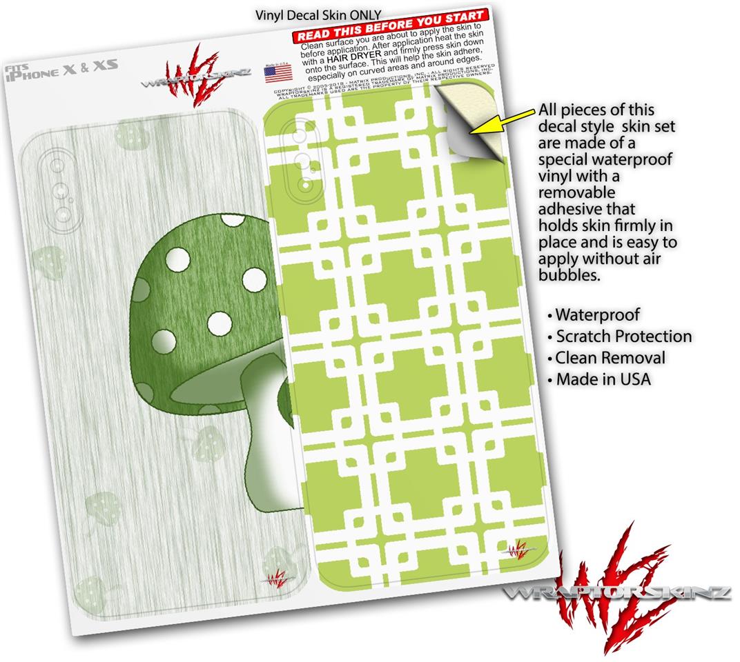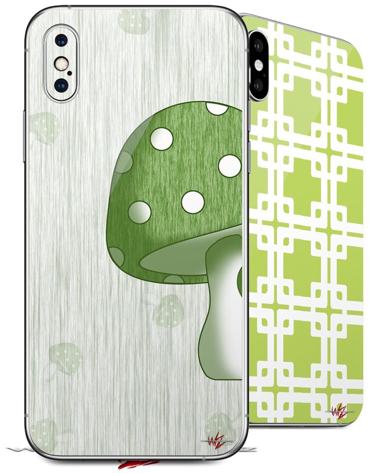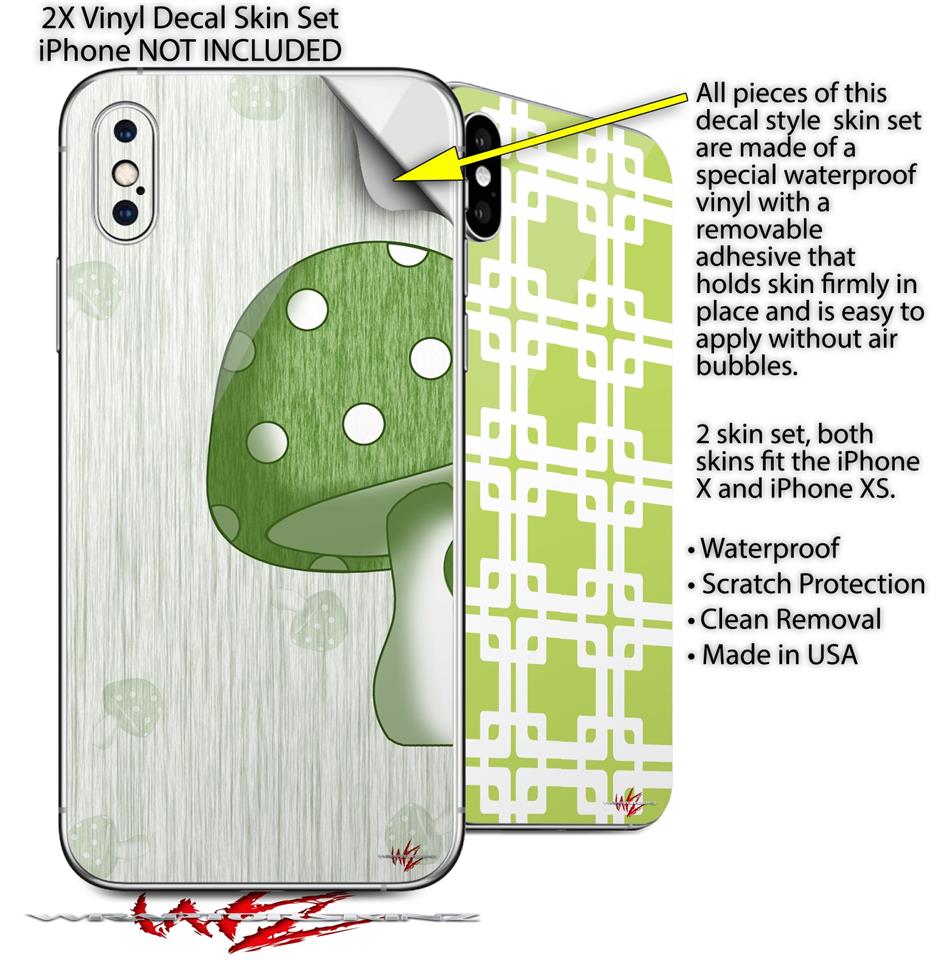 2 Decal style Skin Wraps set compatible with Apple iPhone X and XS Mushrooms Green