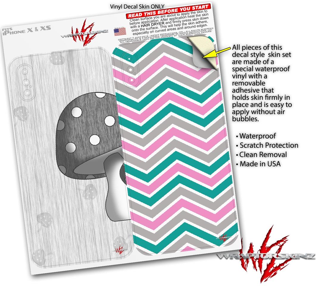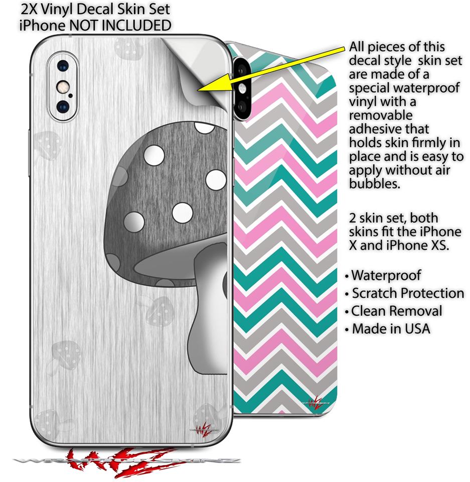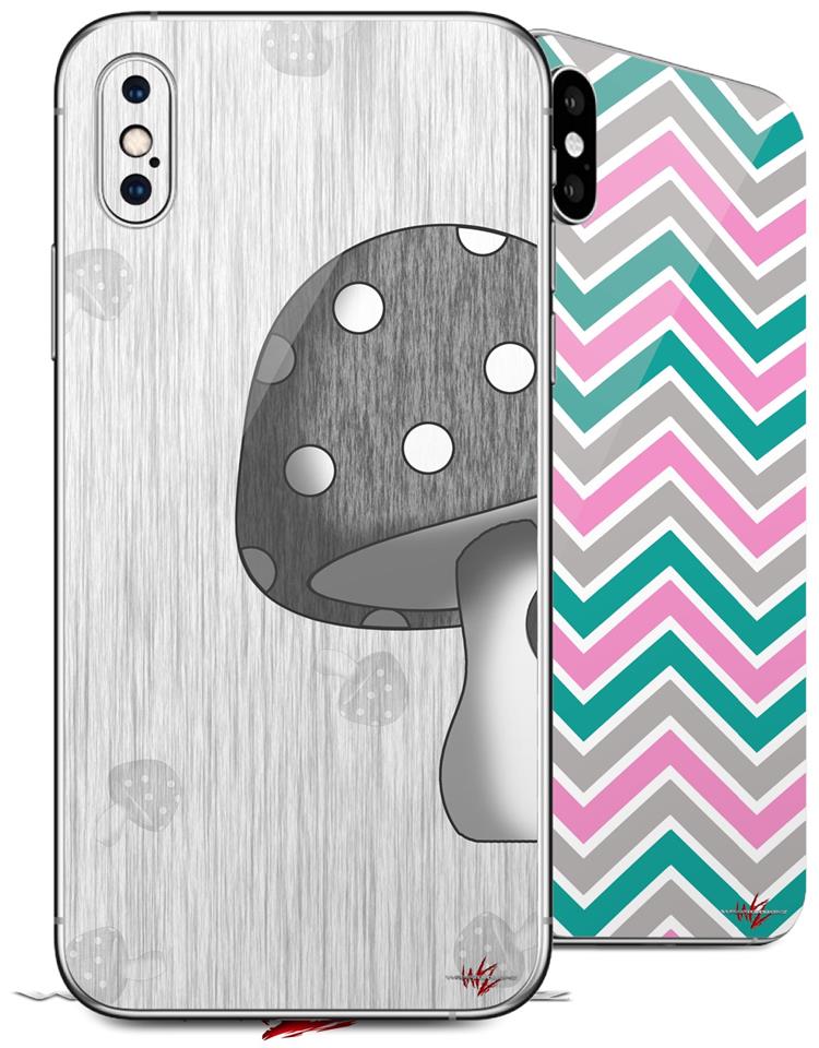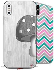 2 Decal style Skin Wraps set compatible with Apple iPhone X and XS Mushrooms Gray