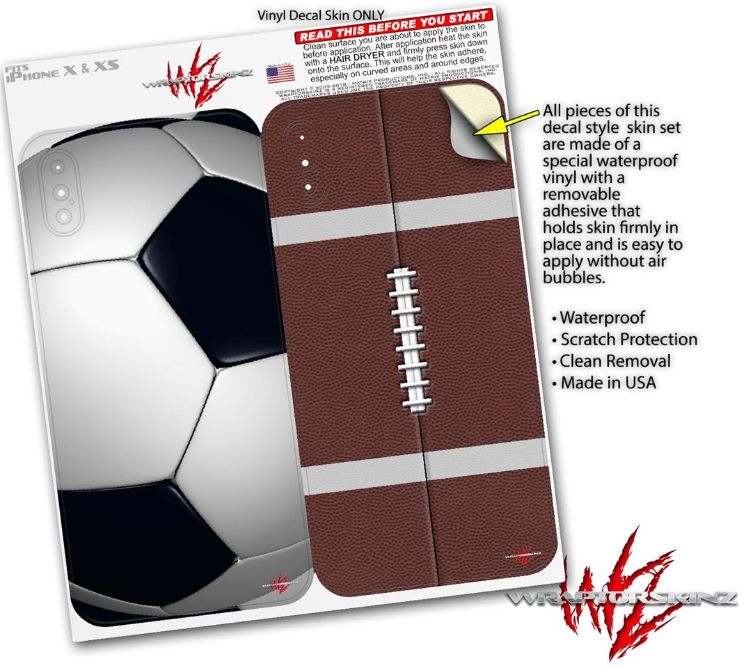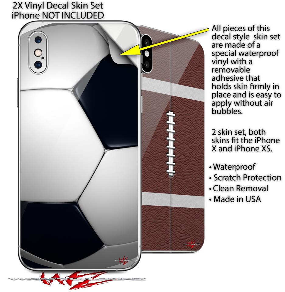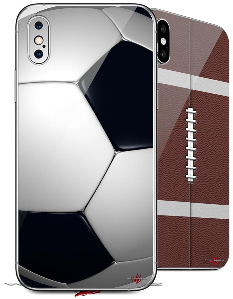 2 Decal style Skin Wraps set compatible with Apple iPhone X and XS Soccer Ball