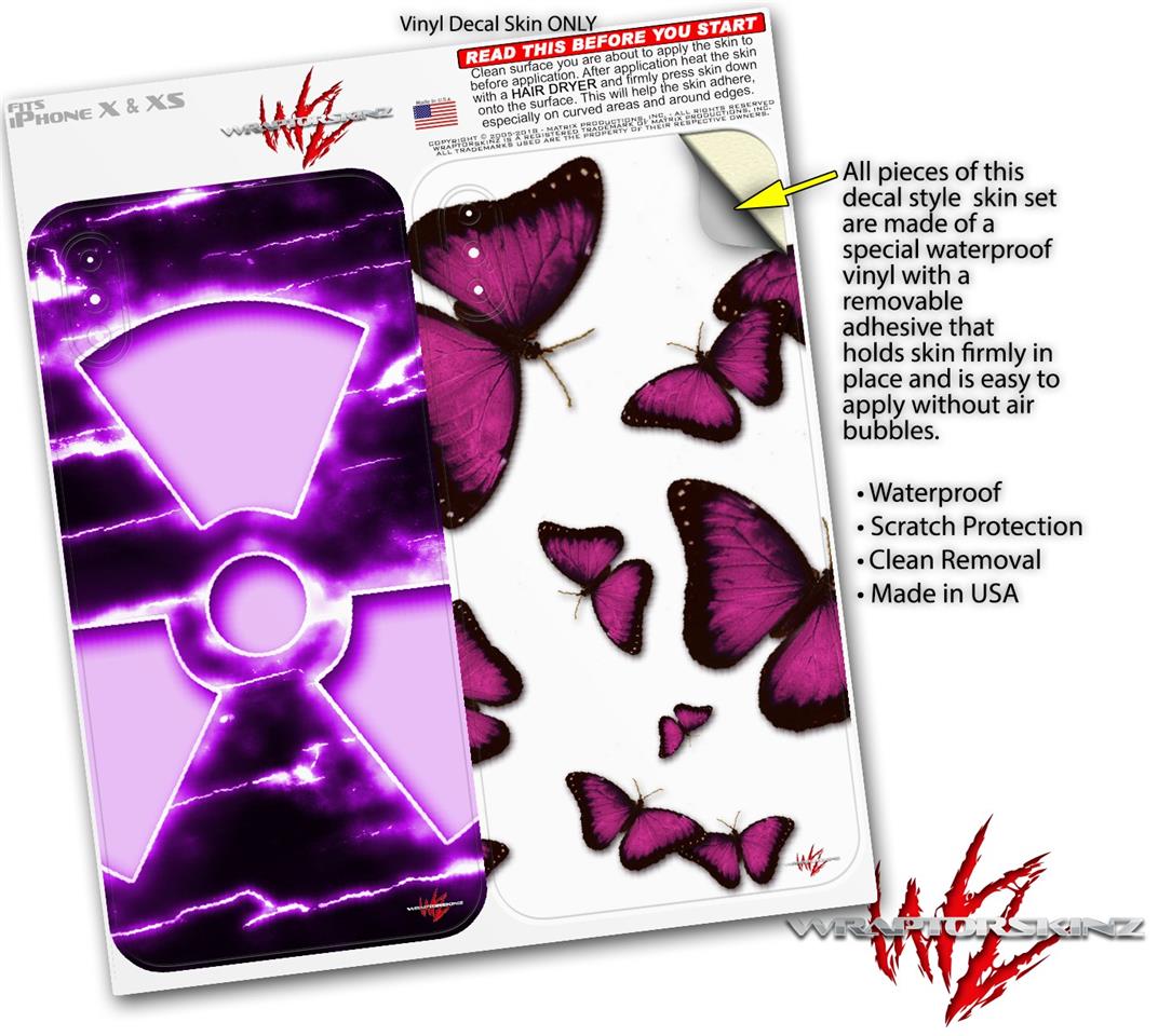 2 Decal style Skin Wraps set compatible with Apple iPhone X and XS Radioactive Purple