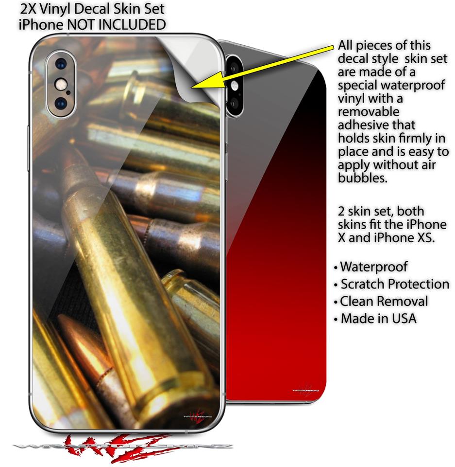 2 Decal style Skin Wraps set compatible with Apple iPhone X and XS Bullets
