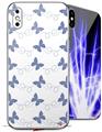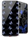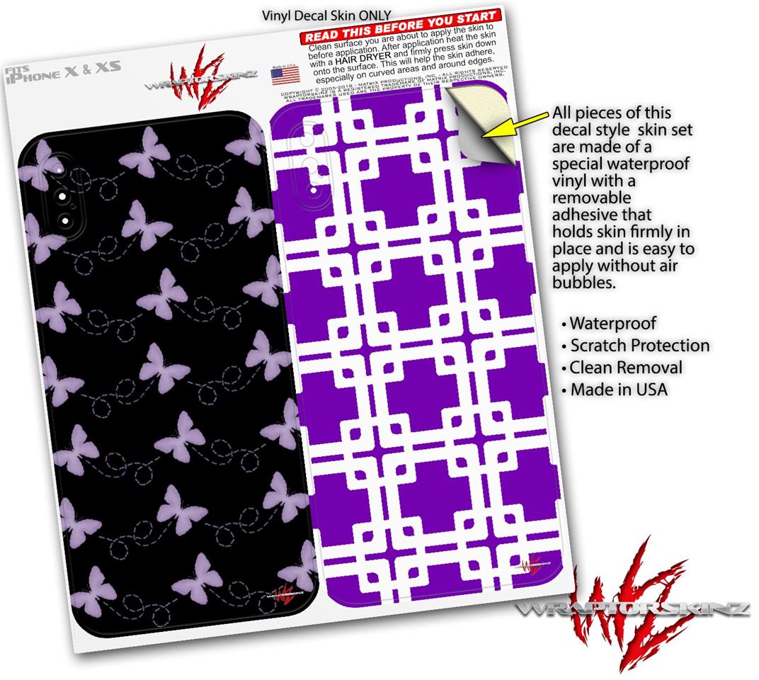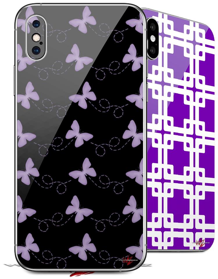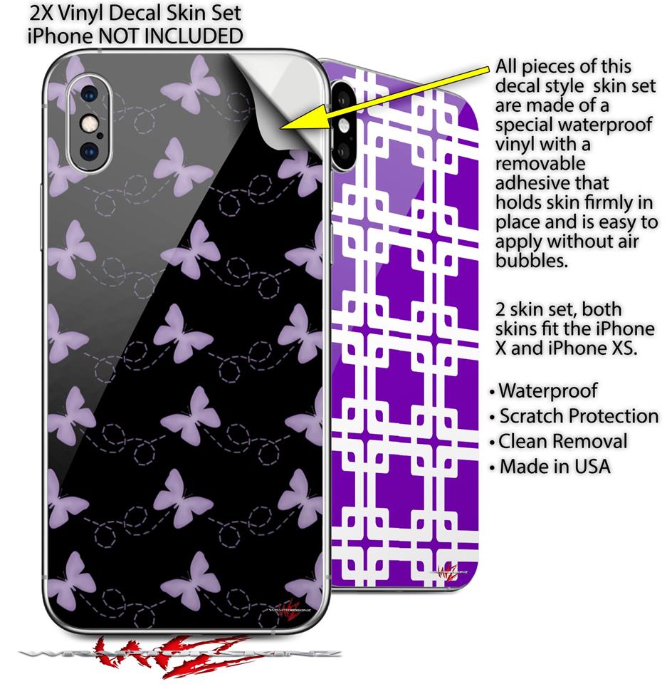 2 Decal style Skin Wraps set compatible with Apple iPhone X and XS Pastel Butterflies Purple on Black