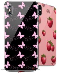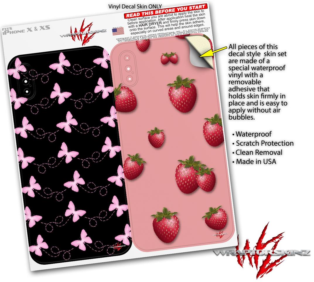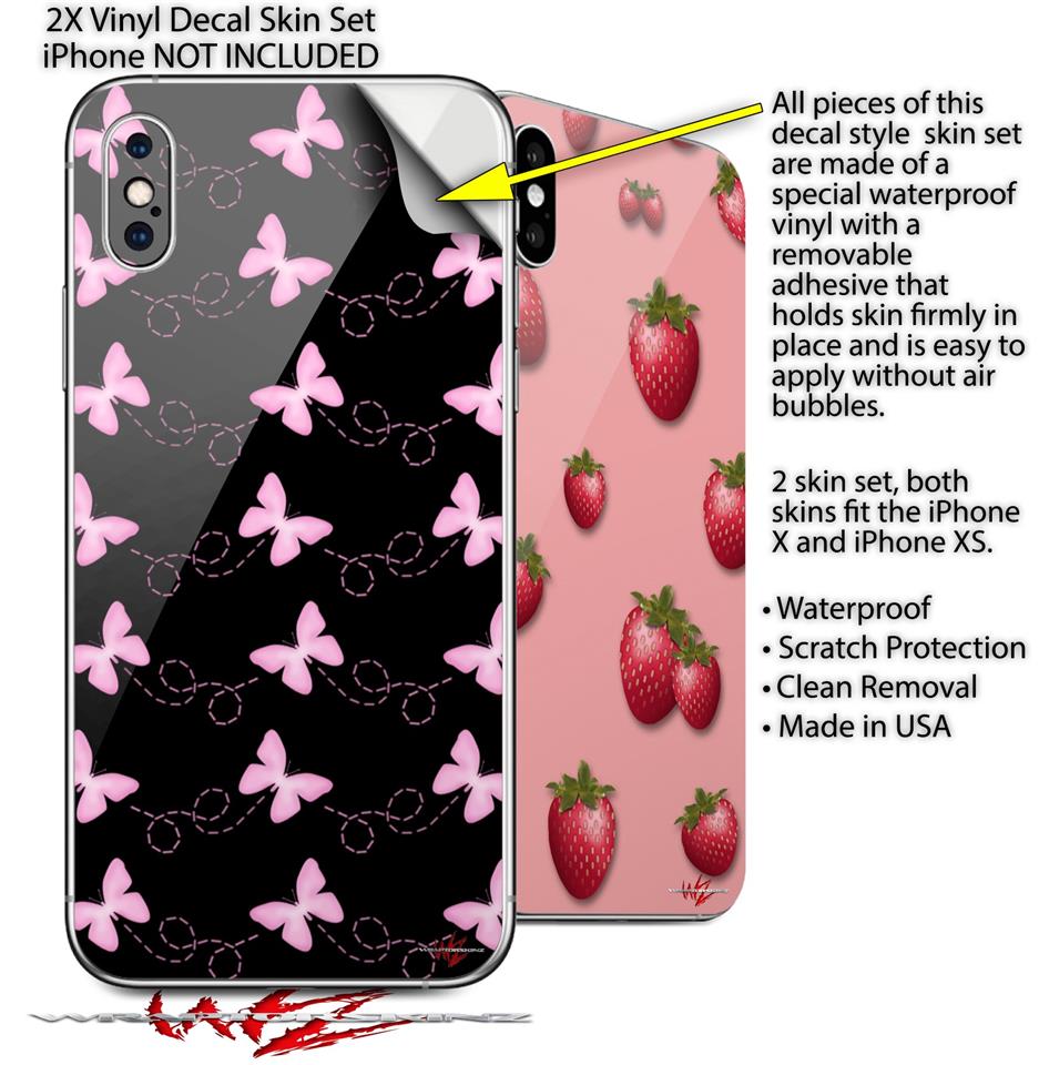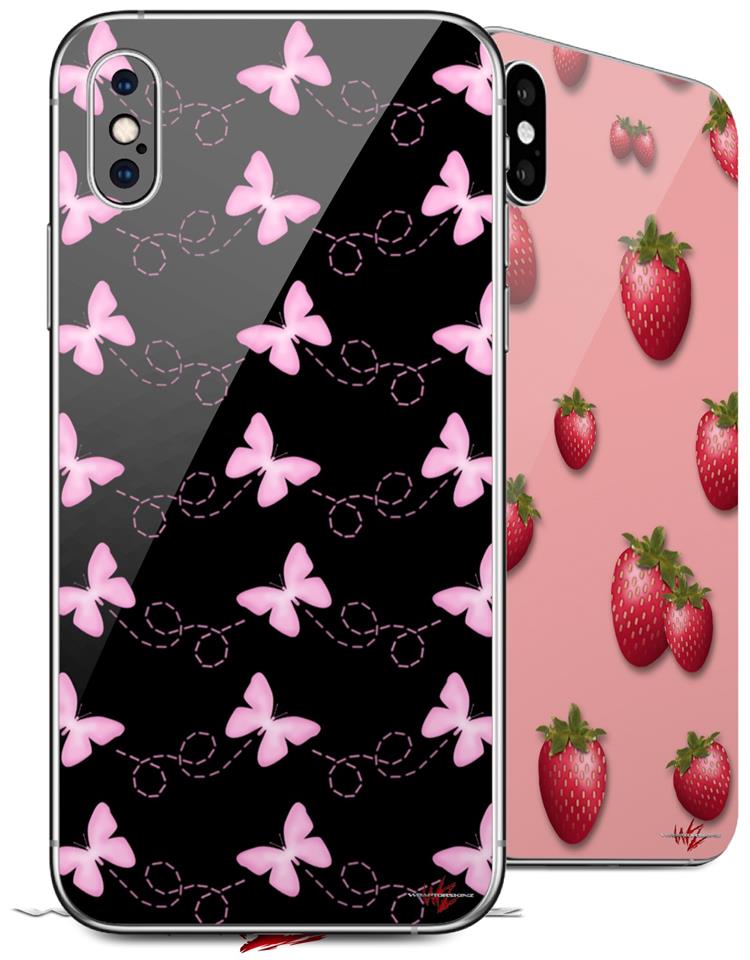 2 Decal style Skin Wraps set compatible with Apple iPhone X and XS Pastel Butterflies Pink on Black