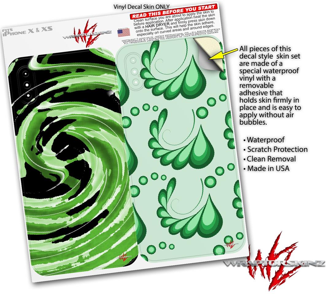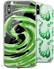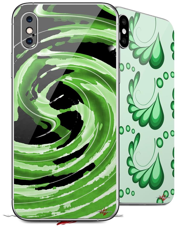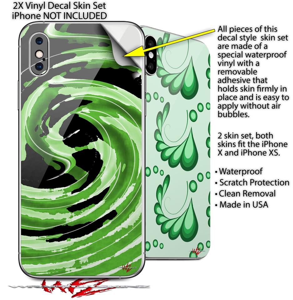 2 Decal style Skin Wraps set compatible with Apple iPhone X and XS Alecias Swirl 02 Green