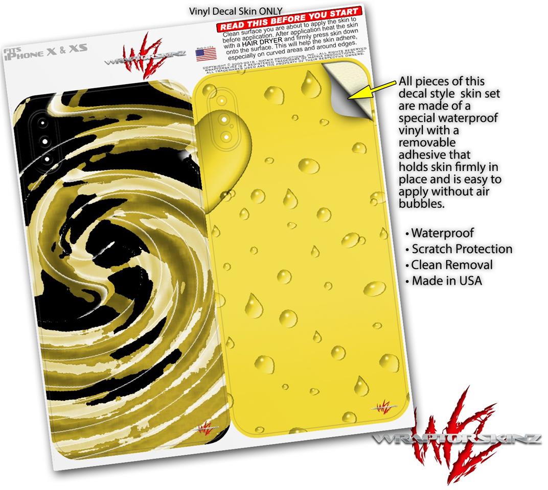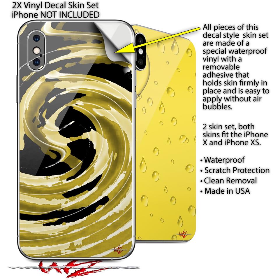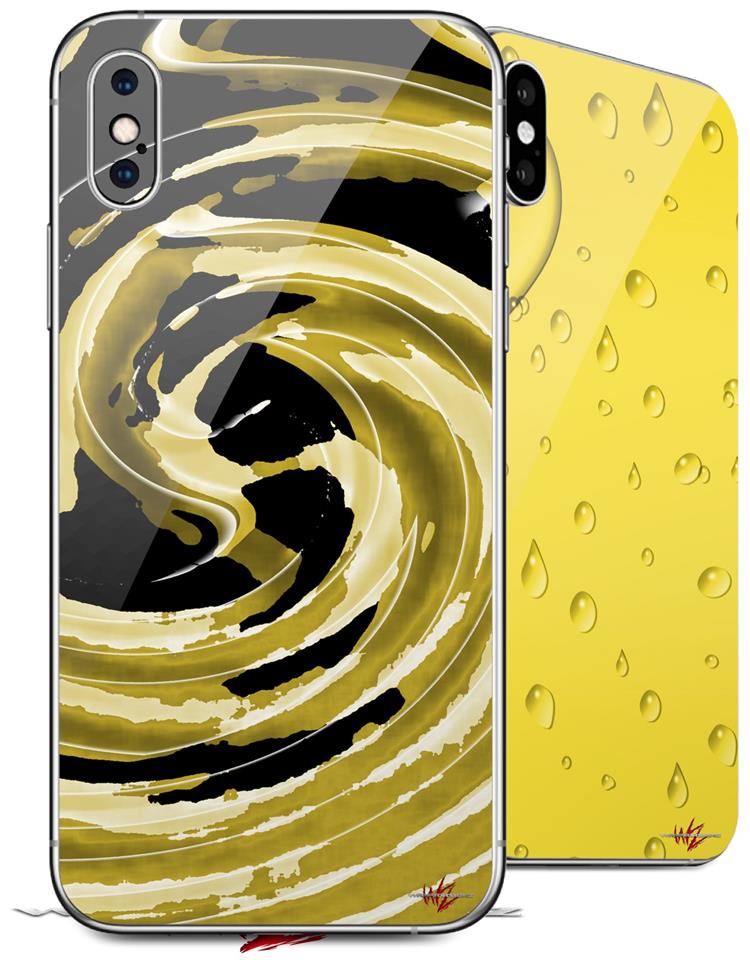 2 Decal style Skin Wraps set compatible with Apple iPhone X and XS Alecias Swirl 02 Yellow