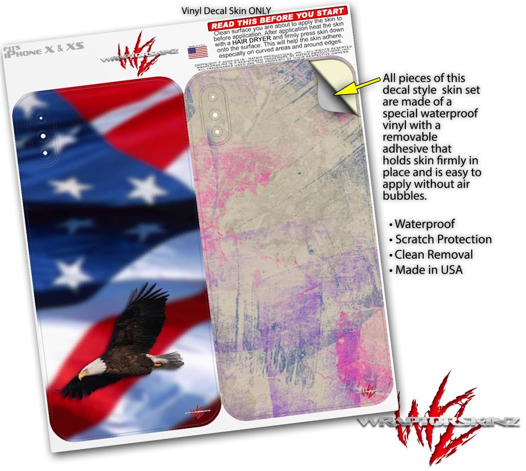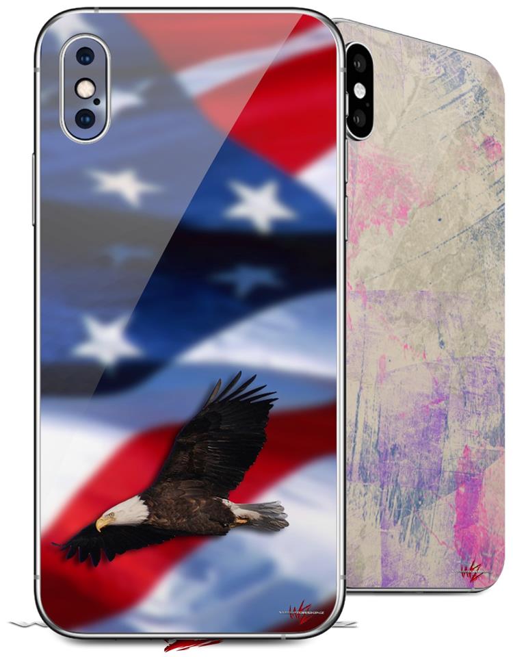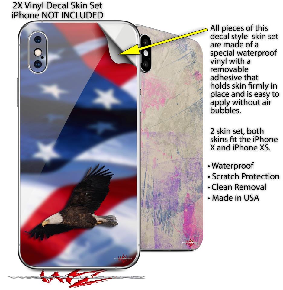 2 Decal style Skin Wraps set compatible with Apple iPhone X and XS Ole Glory Bald Eagle