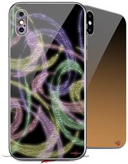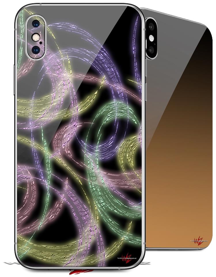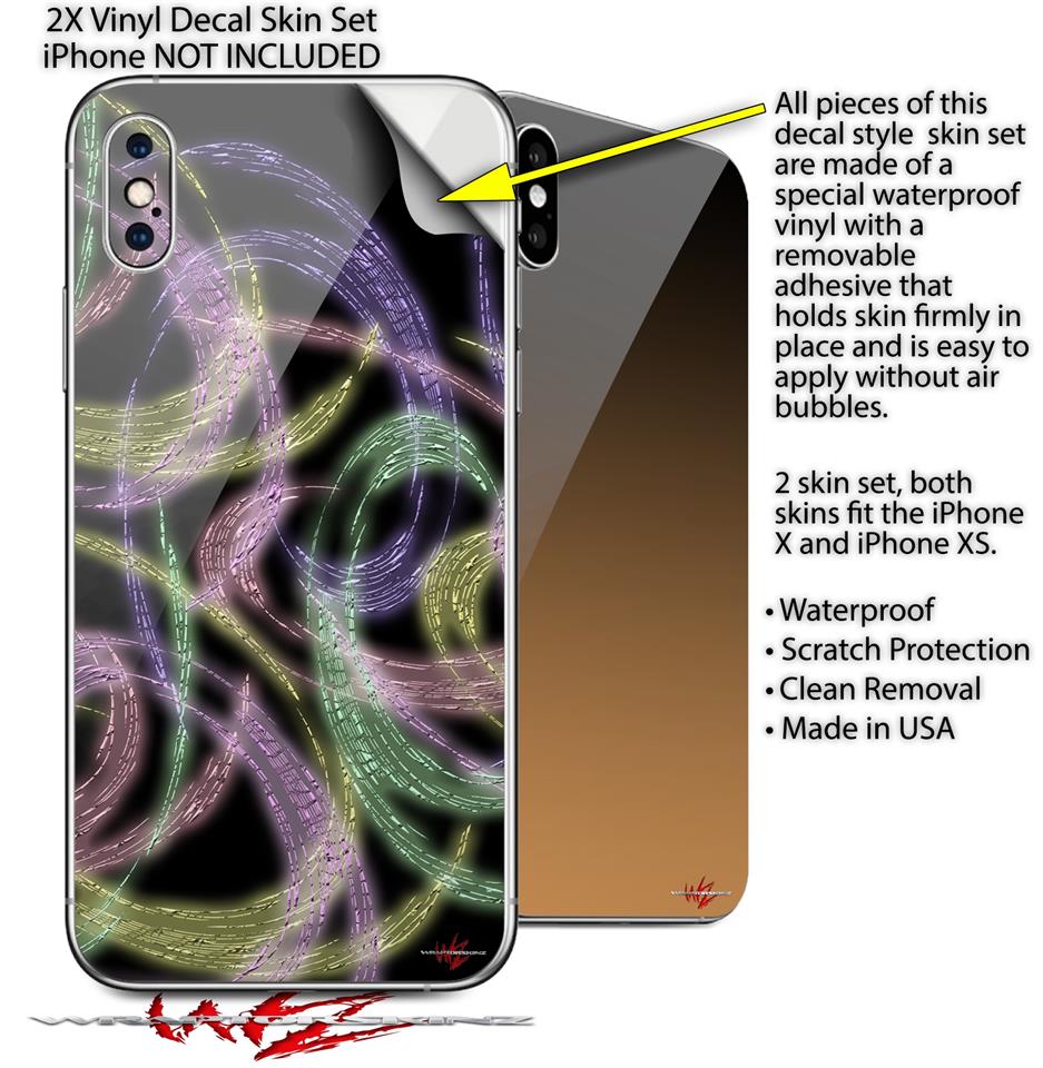 2 Decal style Skin Wraps set compatible with Apple iPhone X and XS Neon Swoosh on Black