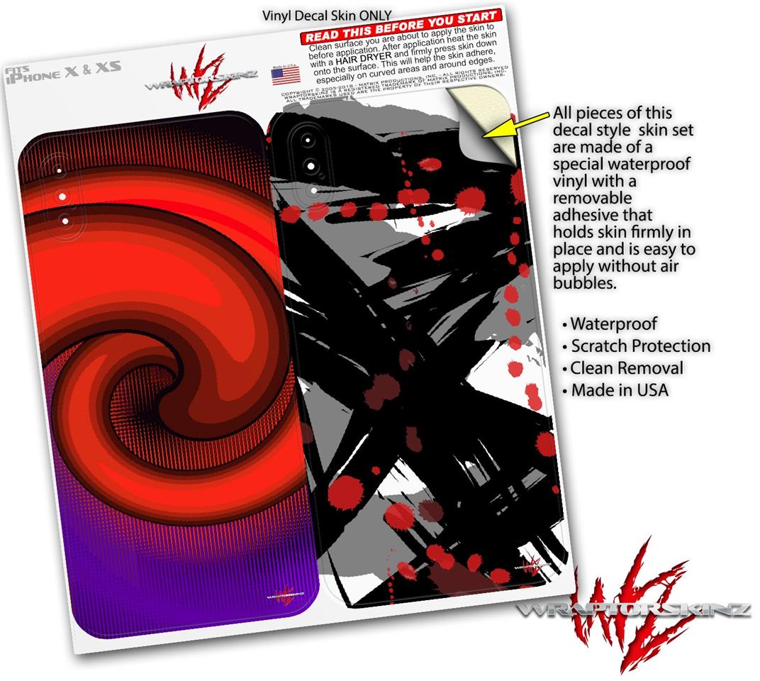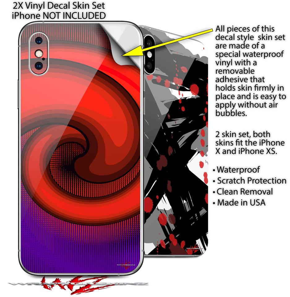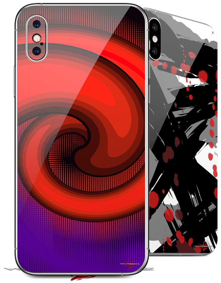 2 Decal style Skin Wraps set compatible with Apple iPhone X and XS Alecias Swirl 01 Red