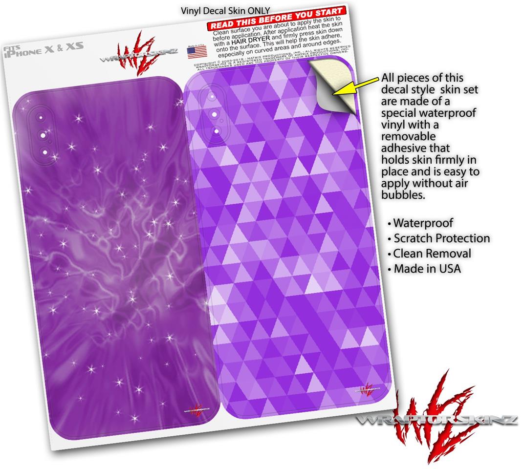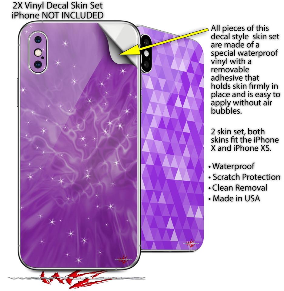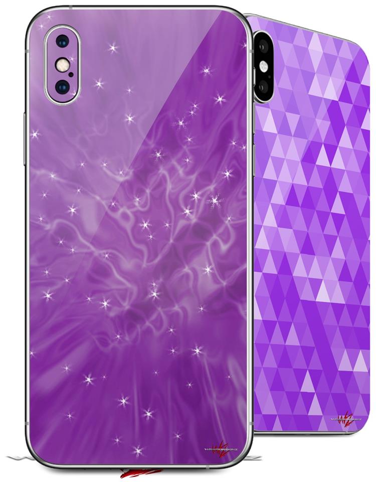 2 Decal style Skin Wraps set compatible with Apple iPhone X and XS Stardust Purple