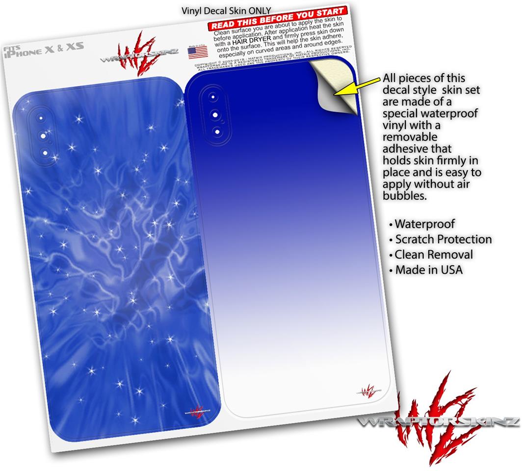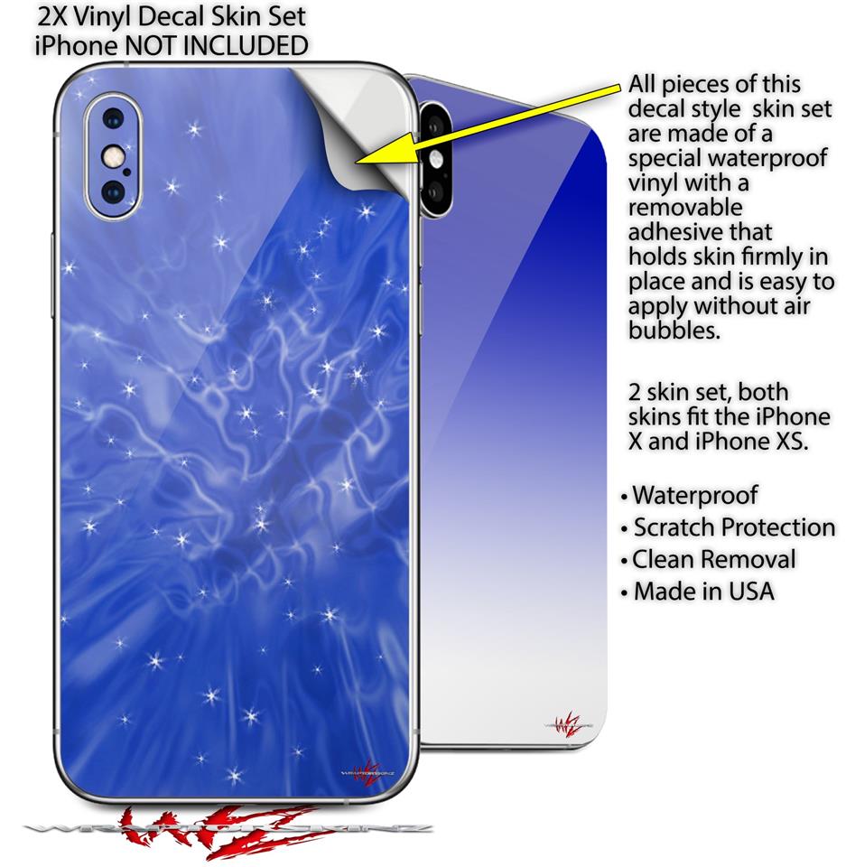 2 Decal style Skin Wraps set compatible with Apple iPhone X and XS Stardust Blue