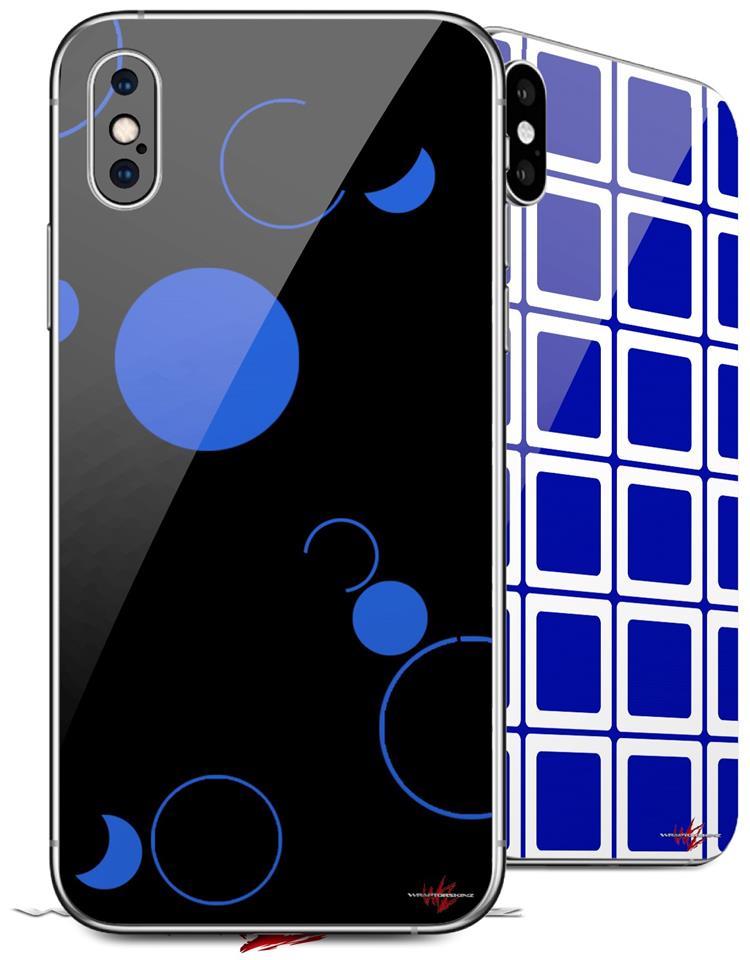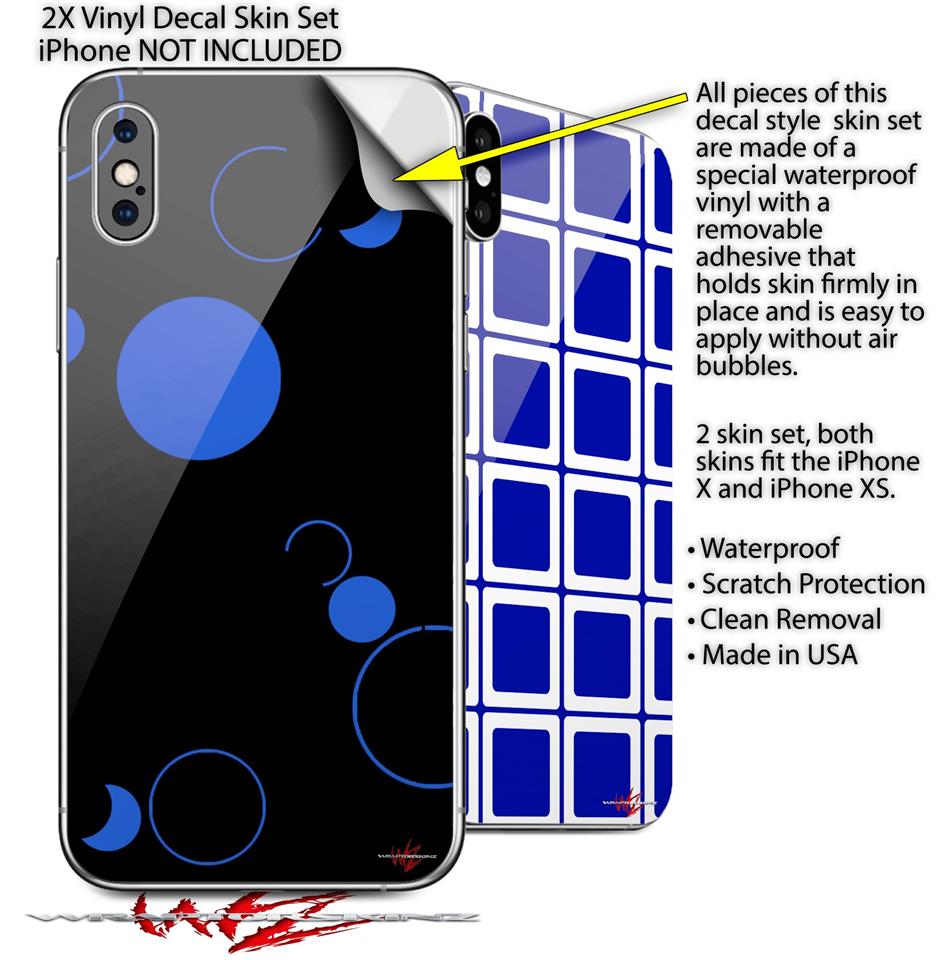 2 Decal style Skin Wraps set compatible with Apple iPhone X and XS Lots of Dots Blue on Black
