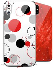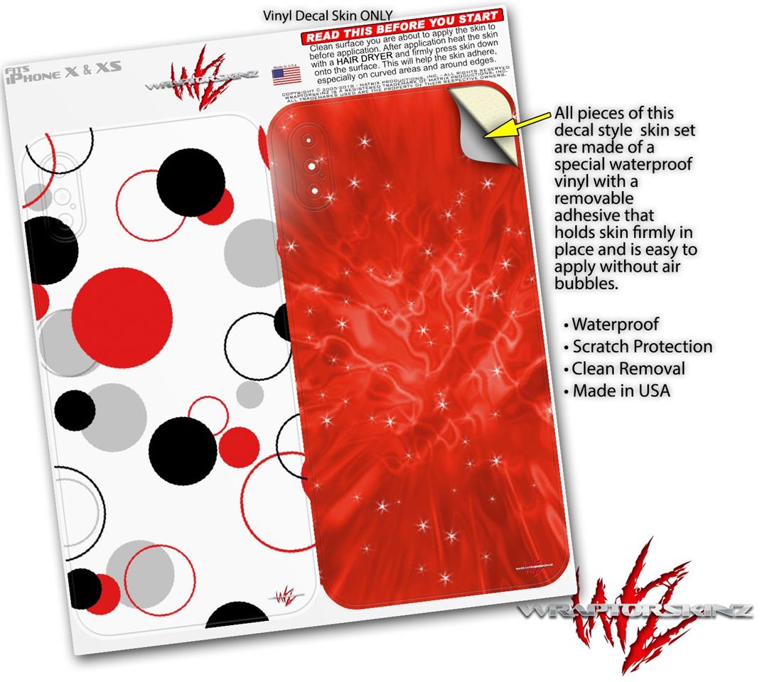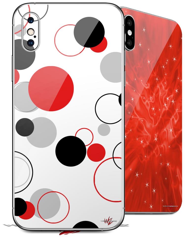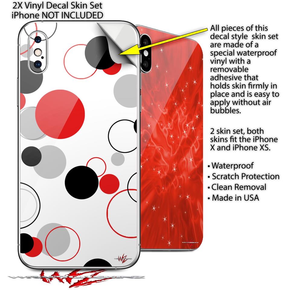 2 Decal style Skin Wraps set compatible with Apple iPhone X and XS Lots of Dots Red on White